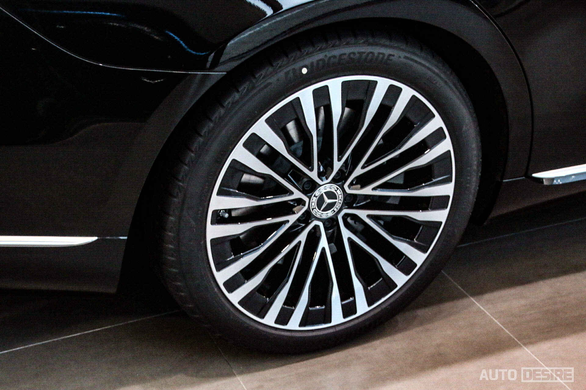 다만 전시차의 사정상 S400d는 외관을 살펴보는 정도로 만족해야 했다. S400d에는 AMG 라인 디자인이 적용되어 범퍼의 디자인이 좀 더 스포티한 형태를 띠고 있고, 롱휠베이스인 S580과 다르게 기본 바디로 전장과 휠베이스가 좀 더 짧아 다른 비율을 보여준다. 다만 전폭은 S400d가 좀 더 넓다. 외관에서 보여주는 AMG 라인의 스타일에서나 2열 승객을 위한 공간이나 제공되는 편의 사양 차이에서 S580보다는 확실히 오너 드리븐 성향에 더 가까운 느낌이다. 휠은 19인치 트윈스포크 AMG 휠, 타이어는 한국타이어 S1 에보3가 장착되는데, 트윈스포크 휠은 S클래스와는 안 어울린다는 평이 큰 것 같다.