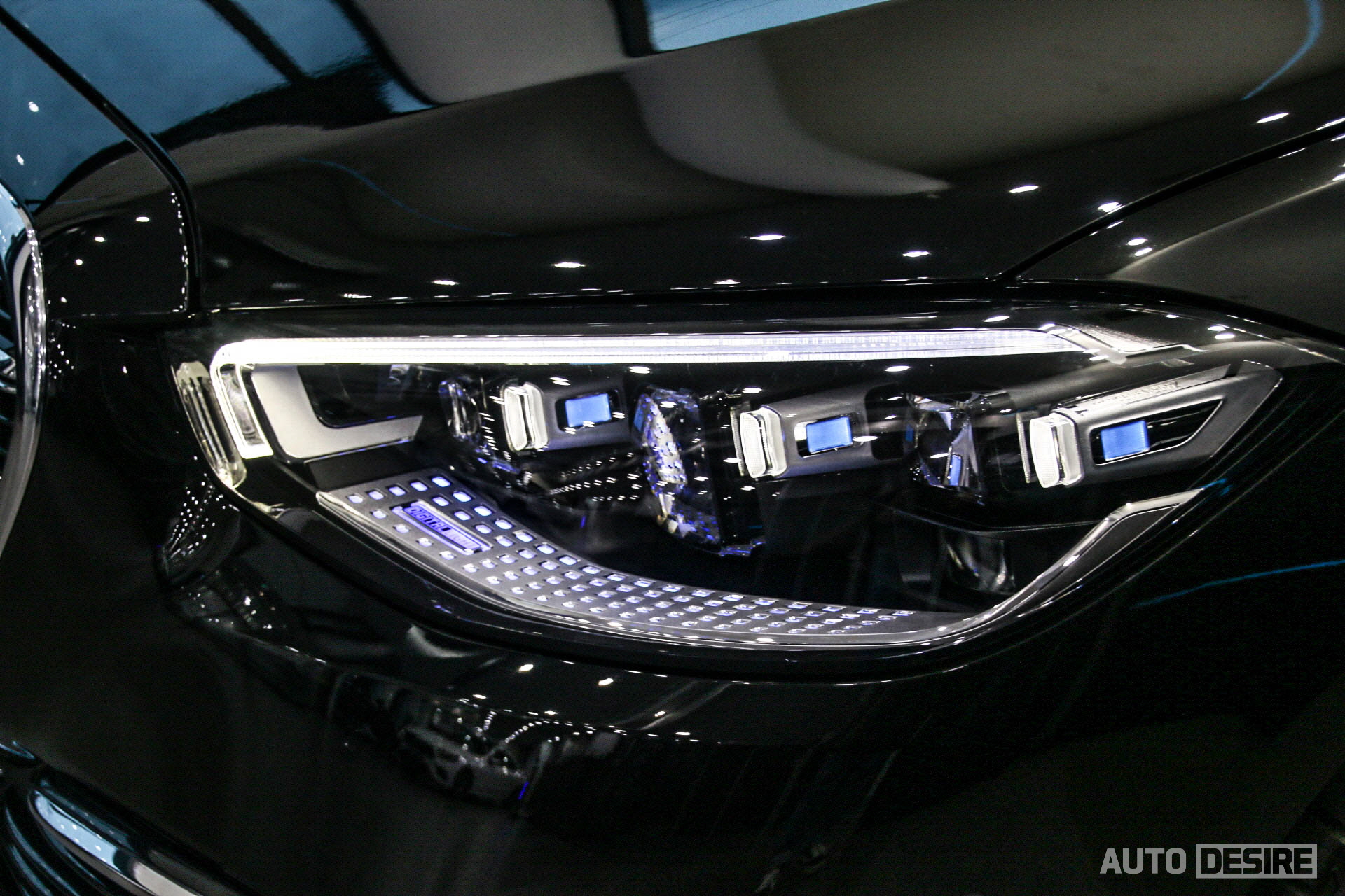 수평형에 역삼각 형태로 적용된 리어램프도 처음엔 어색하게 보였지만, 눈에 익으니 강한 이미지를 만들면서도 과하지 않은 절제된 느낌이다. 이 외 외관의 특이점들을 살펴보면 도어 핸들이 도어 안쪽으로 숨겨지는 히든 타입 플러시 도어 핸들로 변경되었고 웅장하지만 매끄러운 차체로 공기저항 계수를 0.22cd까지 줄였다고 한다. S580 4MATIC에는 20인치 멀티 트윈스포크 휠이 기본, 타이어는 브릿지스톤 투란자 T005가 장착된다. 물론 이 외에도 옵션으로 다른 휠 변경은 가능하다. 헤드램프는 울트라 레인지 하이빔, 어댑티브 하이빔 어시스트 플러스, 능동형 조명 기능 등이 적용되는 디지털 라이트가 적용되는데 푸른색의 화려한 디테일들이 인상적이다.