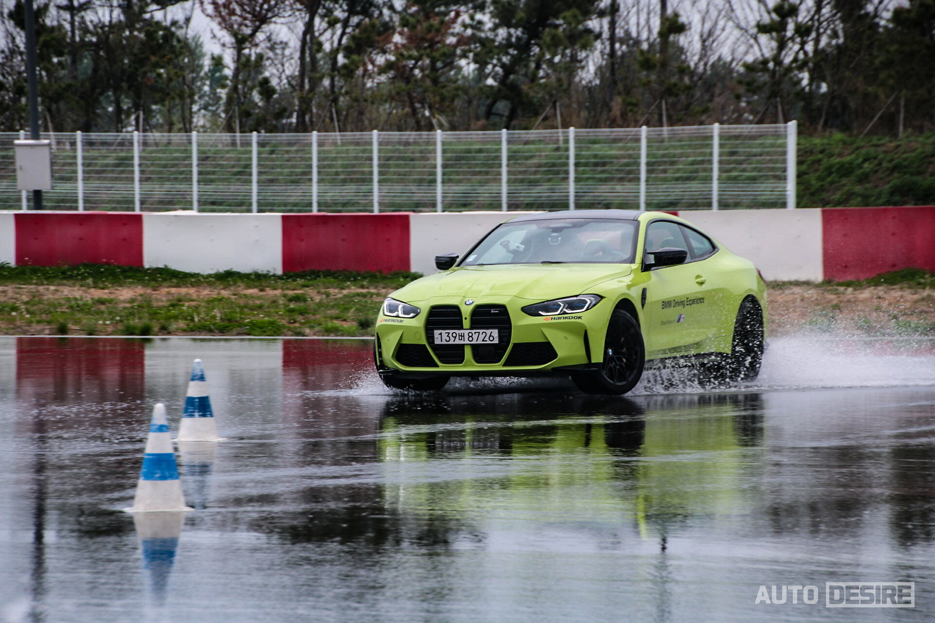 필자가 속했던 B조의 첫 프로그램은 M 드리프트! 바닥에 물을 뿌려놓아 차가 더 쉽게 미끄러지게 만든 노면에서 써큘러 코스를 드리프트로 도는 프로그램이다. 예전부터 BMW M 모델들, M3와 M4 역시 드리프트를 즐기기에도 최적인 차량으로 인기가 높은 편! 인스트럭터의 시범을 본 뒤에 참가자들이 직접 써큘러 코스를 돌면서 드리프트를 배우는 시간을 보냈다. 물론 필자는 아쉽지만 옆자리에서만 느껴봐야 했지만..^^