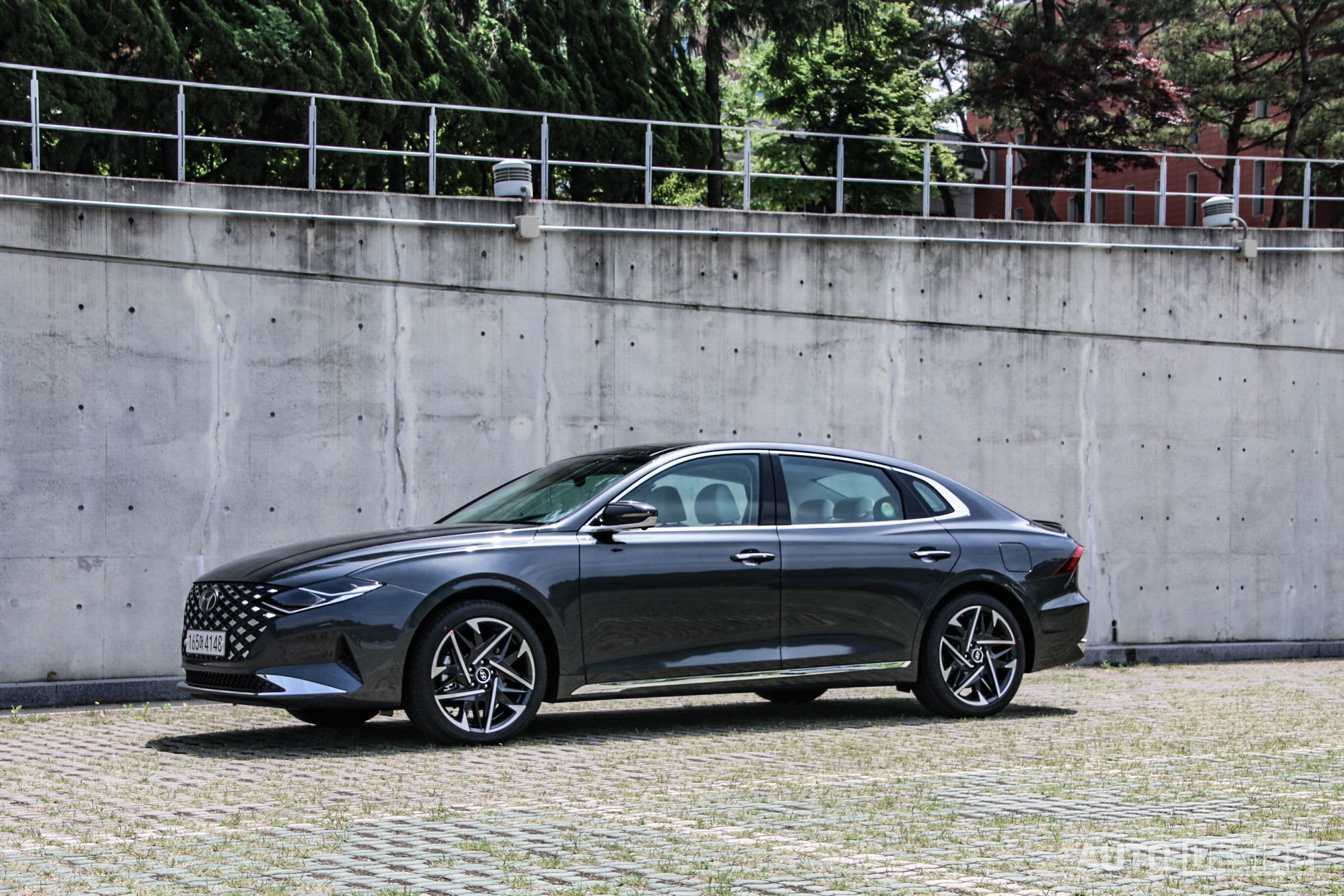 시승차는 르블랑 트림에 3.3 가솔린 엔진과 기타 추가 사양들로 구성된 르블랑 퍼포먼스 패키지로, 첫인상에선 기존 더 뉴 그랜저와 달라진 부분을 바로 알아채긴 좀 어려울 수 있다. 지금 기준에서도 '센슈어스 스포티니스 '를 적용해 파격적으로 달라진 전면 인상, 특히 히든 타입 주간주행등과 파라메트릭 주얼 패턴 그릴은 과한 인상이 있기도 하지만 그랜저 실 고객층에게는 전혀 문제가 되지는 않는 듯하고, 오히려 화려한 스타일을 더 마음에 들어 하는 이들도 적지 않은 것 같다. 이 외 전장, 휠베이스가 길어지면서 더 늘씬해진 비율과 후면 디자인은 필자 개인적으로 변경 전 IG보다 더 멋지다고 생각한다.