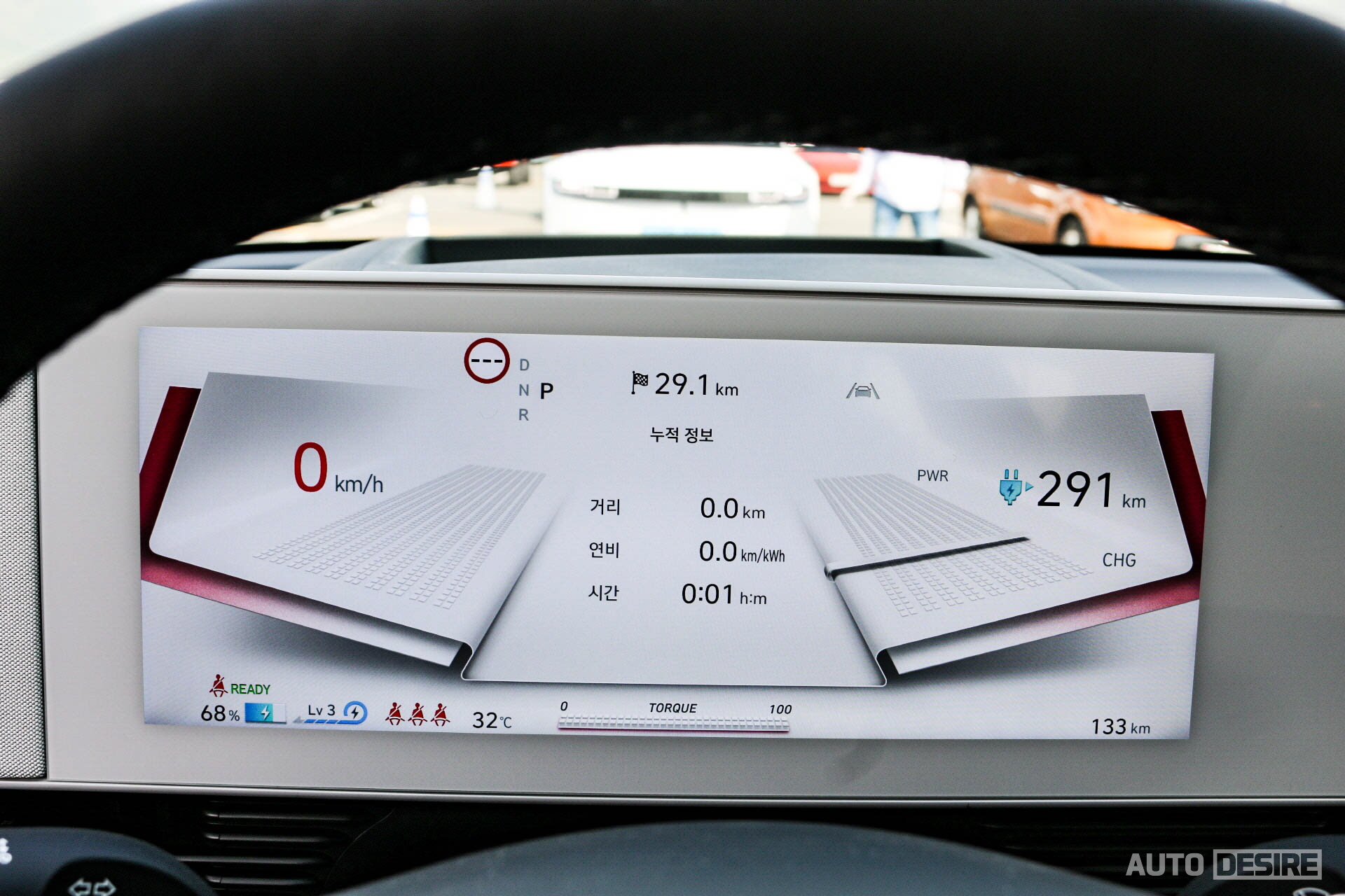 다음은 주행 차례. 듀얼 모터 모델의 강력한 출력이 어느 정도인지 궁금했지만, 아쉽게도 시승차는 2WD 싱글 모터 롱 레인지 모델로 준비되었다. 물론 그렇다 하더라도 여전히 출력은 여유로운 편이고 내연기관 차들과 비교한다면 넘치는 토크로 답답함 없이 가뿐한 주행이 가능하다.