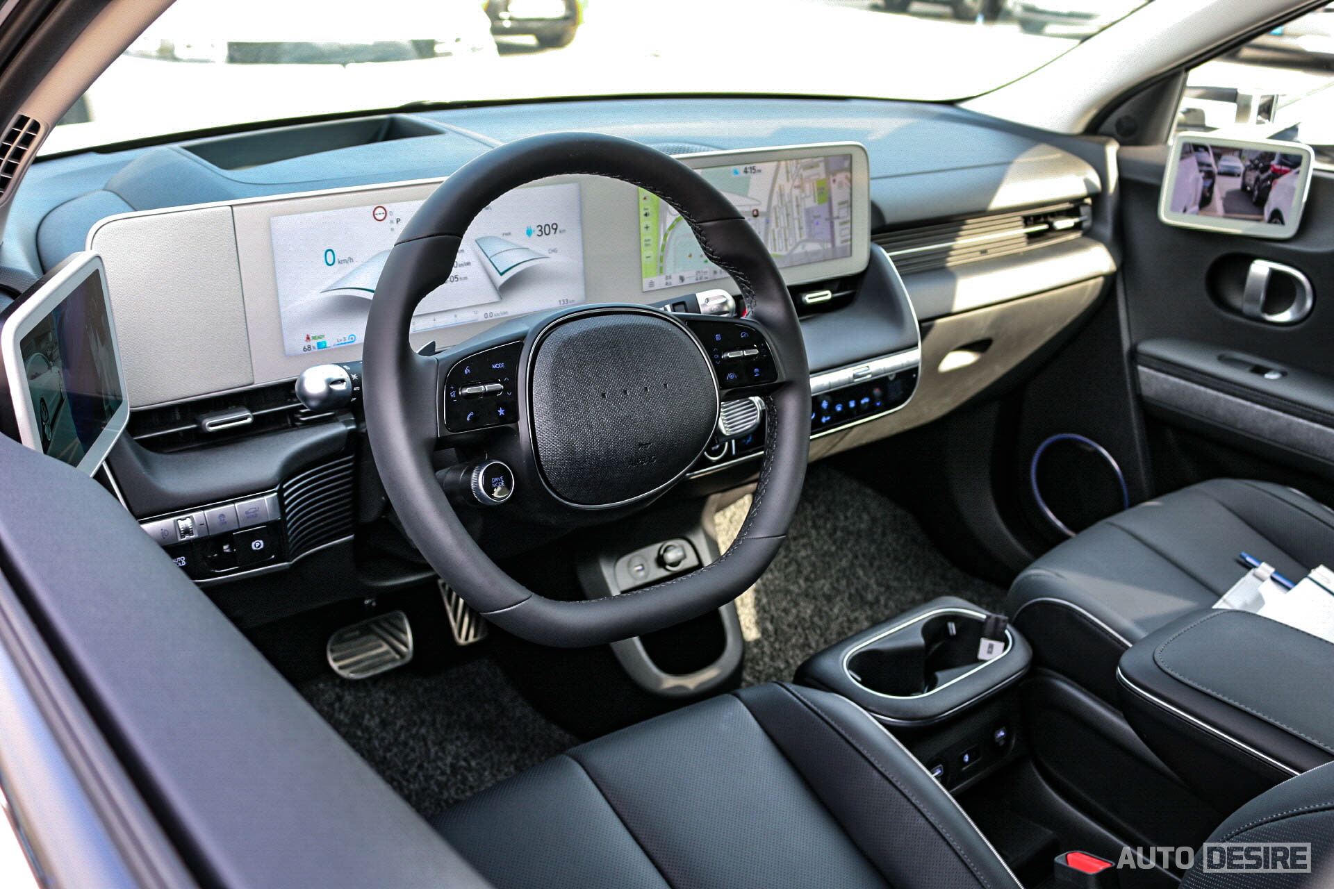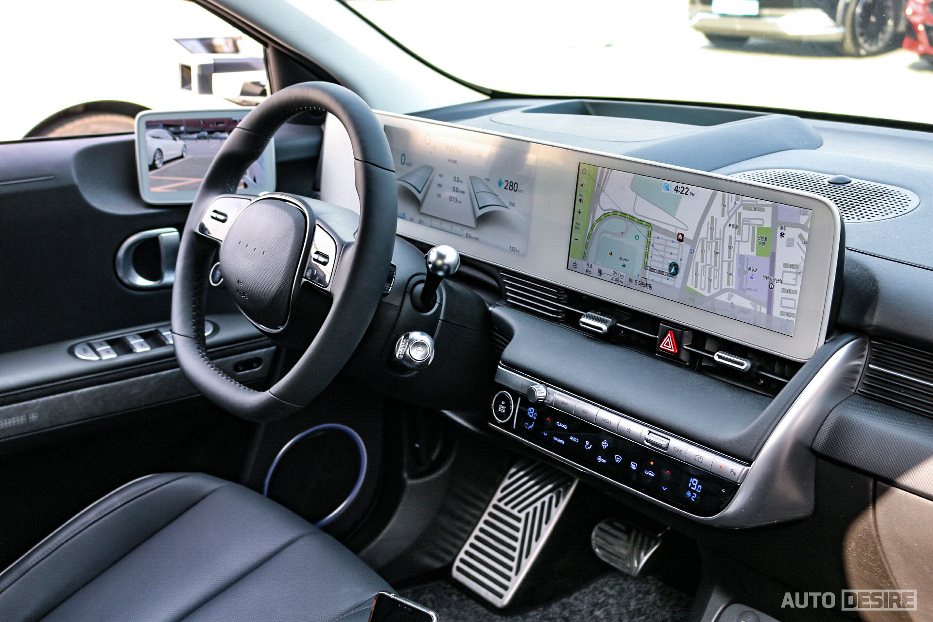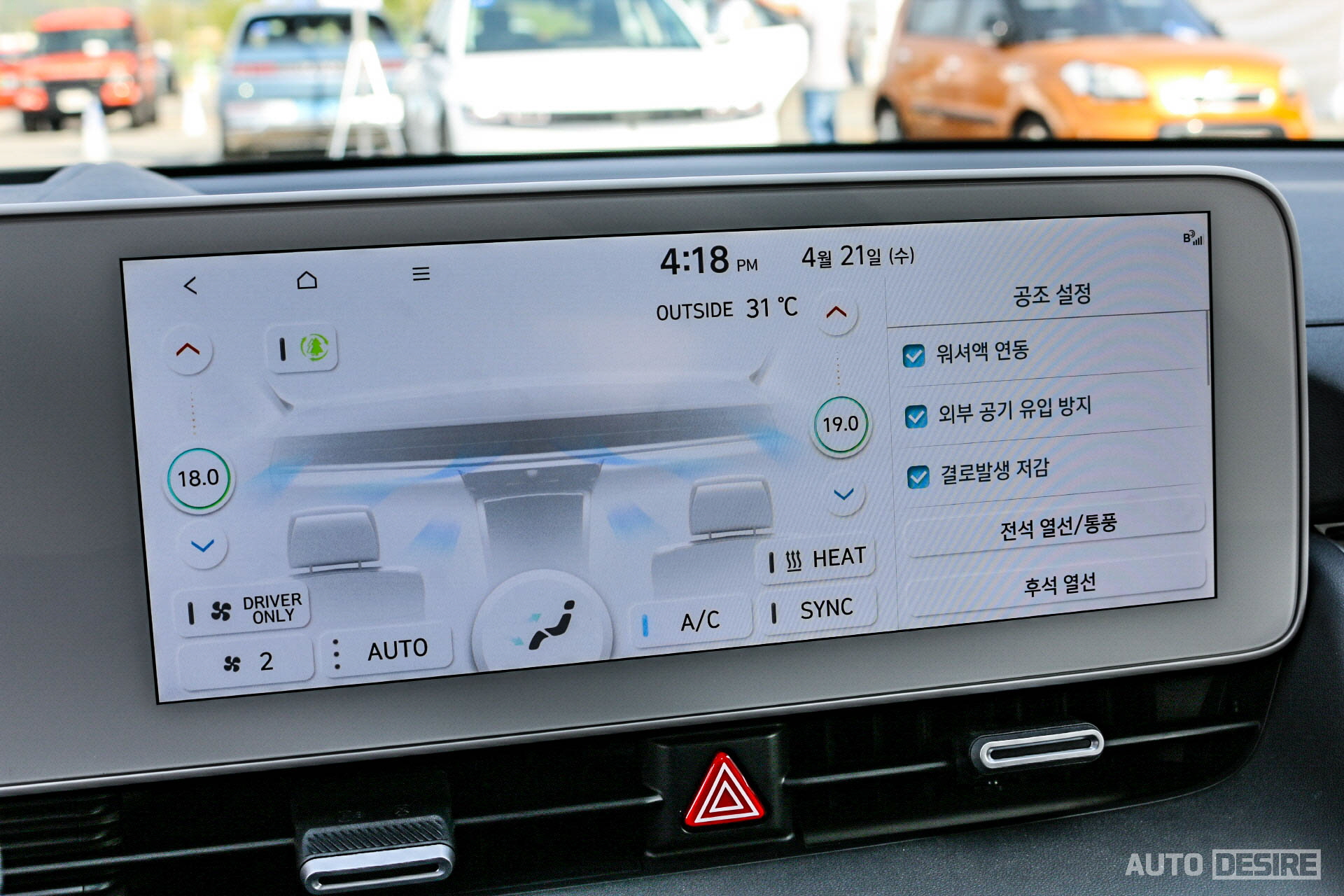 전체적으로 넓어 보이는 수평형 구조에 운전할 때뿐만 아니라 충전 중 휴식도 더 편할 수 있게 운전자를 배려하는 1열 릴렉션 시트와 다리 지지대, 기타 풍성한 편의 사양, 스피커 커버를 따라 예쁘게 들어오는 앰비언트 무드 램프 등 전반적으로 만족스럽기는 하지만 아쉬운 부분도 물론 있는 법.