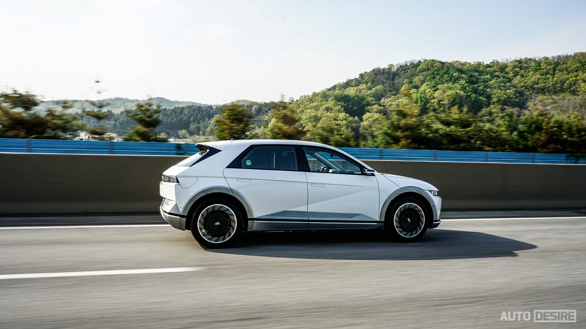 일상에서는 출퇴근 용도로, 주말에는 가족들과 차박이나 여행 등 다양한 목적으로 활용할 크로스오버 차량이기 때문인지 승차감은 편안함에 중점을 둔 느낌이며 서스펜션의 느낌도 소프트한 편이다. 때문에 급격한 코너에서 운전석에서는 롤이 제법 느껴지기도 하고 차의 자세를 바꾸려고 하면 흔들리는 감이 없지는 않지만 배터리와 구동계 때문에 무게 중심이 낮은 덕분에 차체 자체가 흐트러지지는 않고 기대 이상으로 잘 돌아나가준다. 대신 20인치의 큰 사이즈 휠이 적용된 탓인지 요철 구간을 넘을 때 약간씩의 충격 올라올 수 있다.