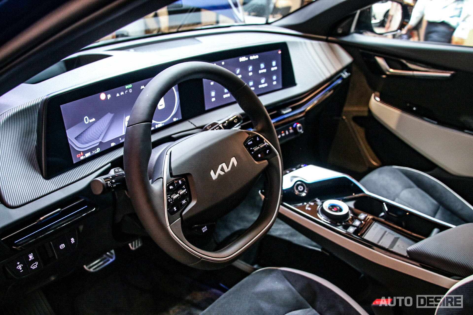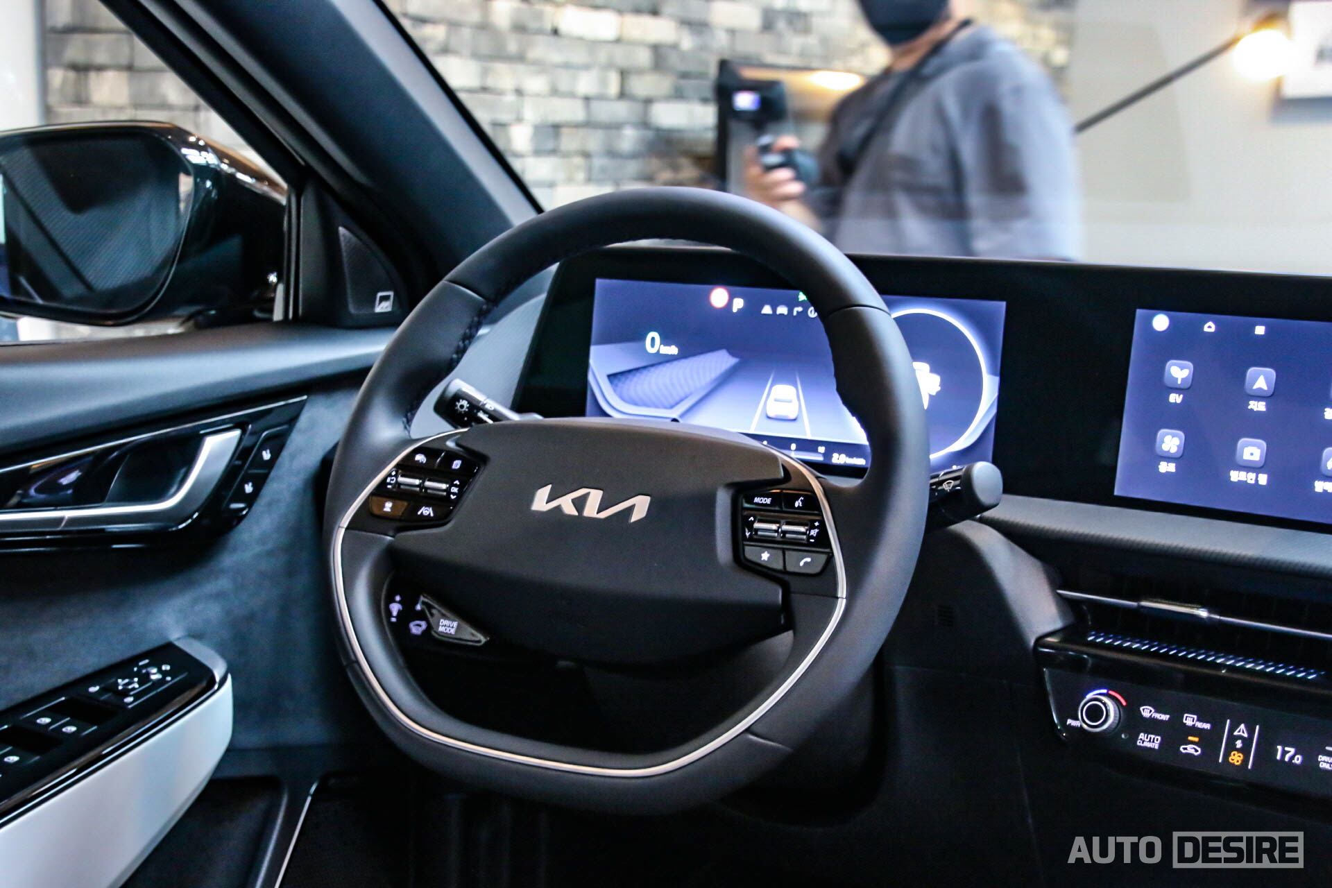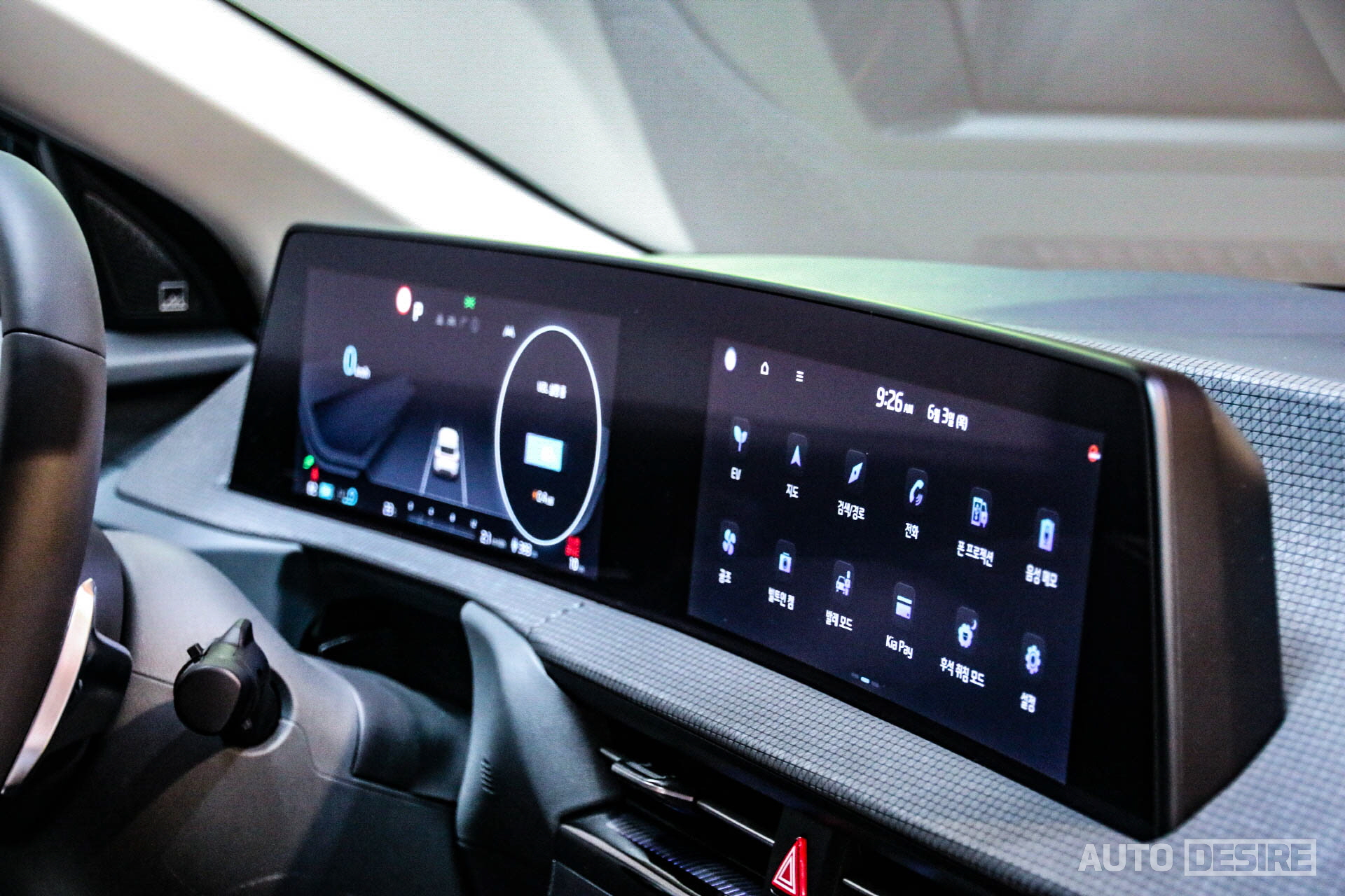 크래시패드 상단으로는 12.3인치 클러스터와 12.3인치 내비게이션 화면이 쭉 이어진 파노라믹 커브드 디스플레이가 적용되어 막힌 부분 없이 시원한 개방감을 전해주며 대화면으로 좋은 시인성을 전달한다. 계기판의 주행 모드별 테마, 그래픽은 같은 E-GMP 기반 전용 전기차인 현대 아이오닉 5와 공유하는 모습이며, 블랙 테마/화이트 테마를 선택하거나, 원하는 시간대별로 변경되게 선택할 수도 있다.