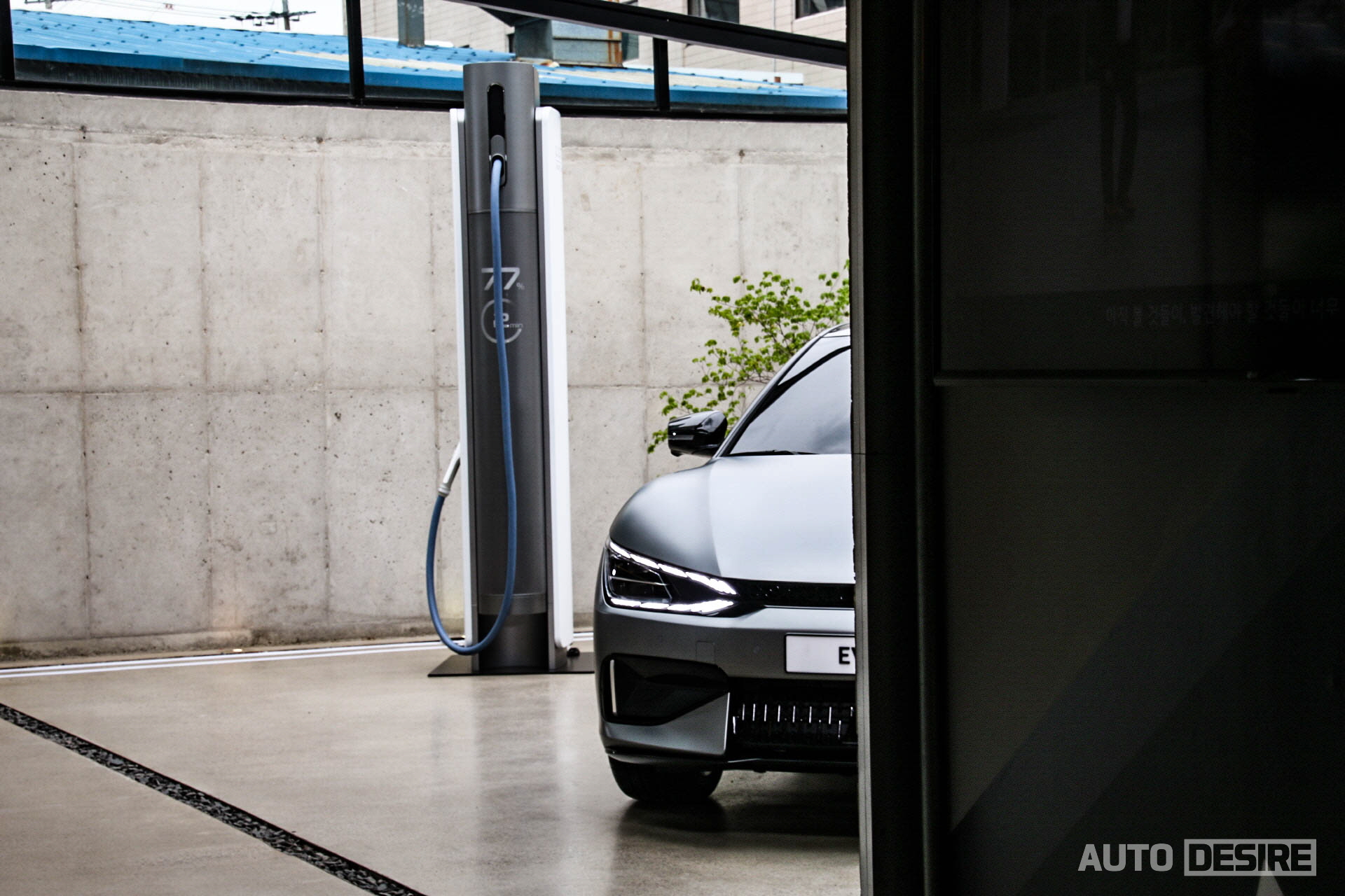 이미지가 아닌 실물로 만난 EV6의 첫인상은 생각보다 더 강렬하고, 낮고 와이드한 포지션으로 날렵하면서 각 부분의 볼륨감은 강하게 살려 상당히 스포티한 분위기를 전하며, 주행 성능에 대한 기대를 또 크게 만든다. 전체적인 비율과 라인 때문인지 차가 그렇게 크다는 느낌이 전해지지는 않지만 2,900mm의 휠베이스와 4,695mm의 전장으로 어지간한 준중형-중형 SUV와 비견될 정도의 제법 큰 덩치를 가지고 있으며, 앞뒤로 짧은 오버행으로 안정감이 느껴진다.