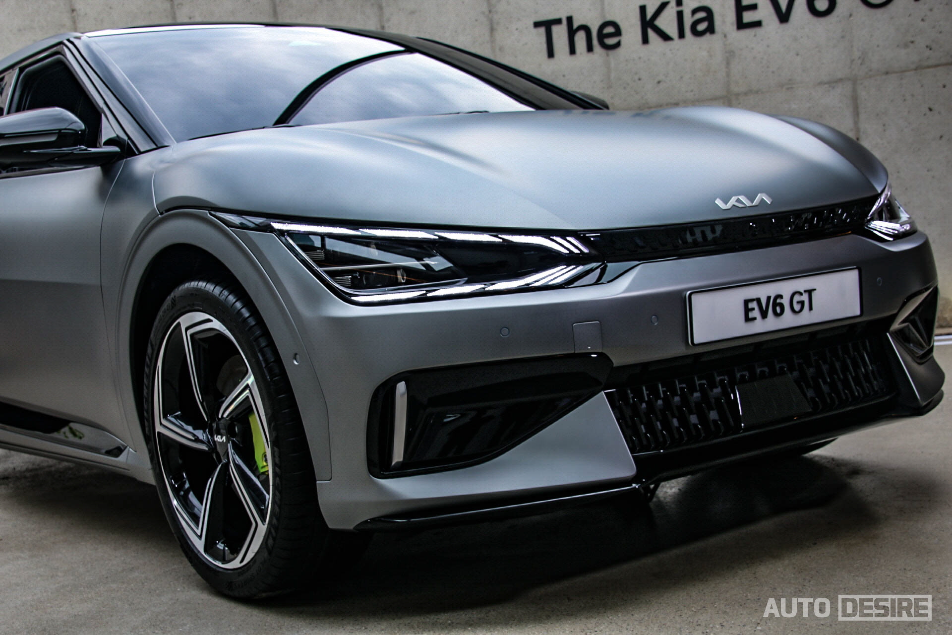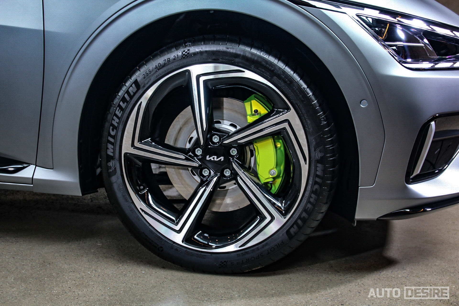 그리고 전기차도 더 강력하고, 더 빠른 차를 원하는 고객들을 위한 모델, 2022년에 출시 예정인 고성능 버전 'EV6 GT'도 이번 쇼케이스를 통해 실물을 만날 수 있었다. 무광 외장 컬러와 함께 곳곳의 블랙 포인트 컬러, GT 라인과 함께 공유하는 공격적인 형상의 범퍼 디자인, 휠 하우스를 가득 채우는 21인치 휠과 그 안쪽으로 보이는 형광 라임 색상의 대용량 캘리퍼, 미쉐린 PS4S 타이어까지 겉으로 보이는 몇몇 부분만으로도 일반 EV6와 GT 라인, 또 이 외 다른 전기차들과는 다른 차라는 걸 바로 느낄 수 있다.