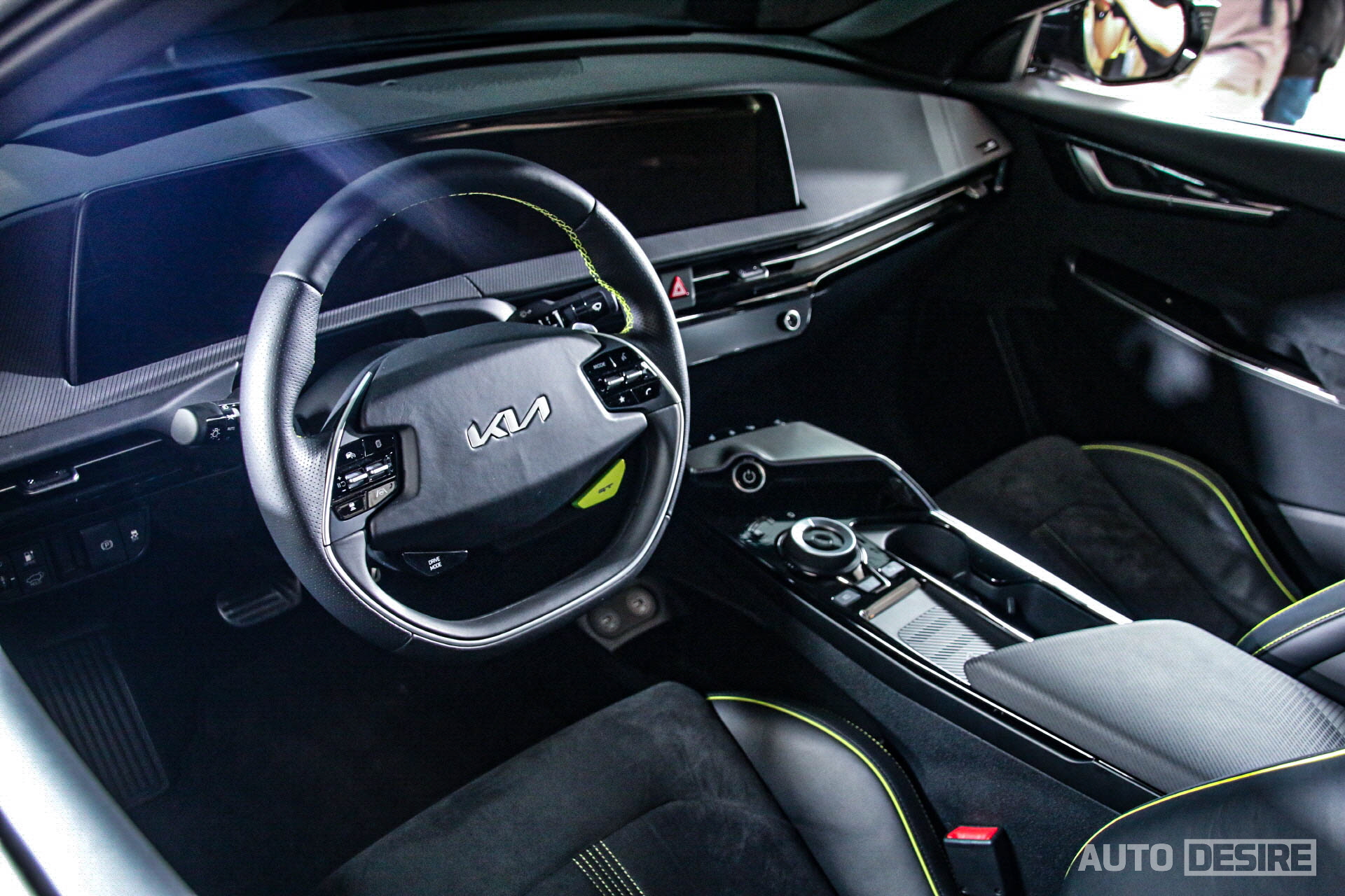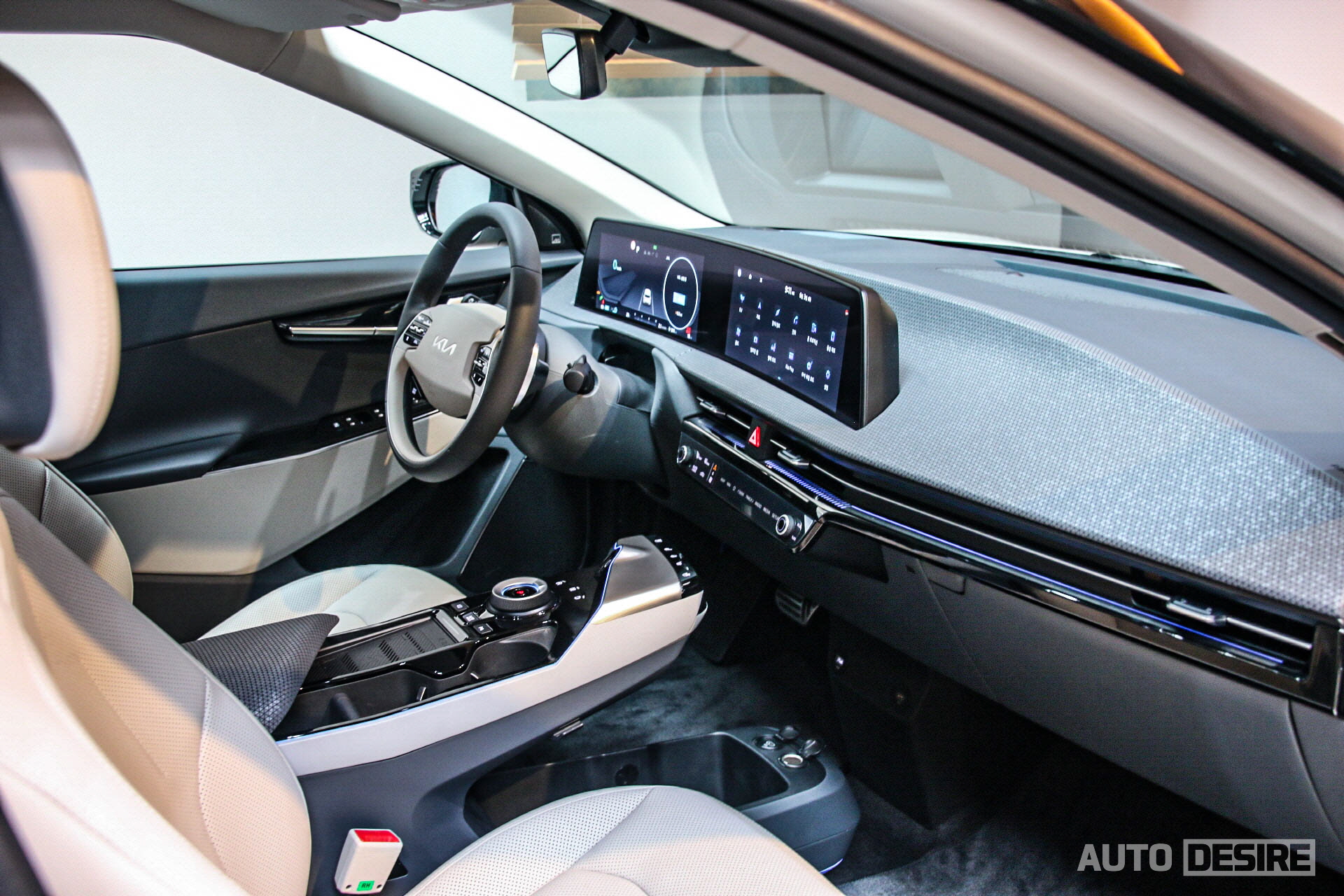 실내는 계기판의 그래픽 구성을 포함해 디테일한 요소에서는 전기차적인 특성을 보여주고 있지만, 큰 틀은 기아의 최신 모델들의 구성을 거의 동일하게 따르고 있어 외관에 비해서는 낯선 느낌은 덜하며, 고급감도 부족하지 않다. 더불어 실내 소재도 폐 플라스틱 재활용 소재, 친환경 오일, 추출물 등을 사용해 주행에서의 탄소 배출 제로뿐만 아니라 생산 공정과 기타 부분에서도 지속 가능성을 중시했다.