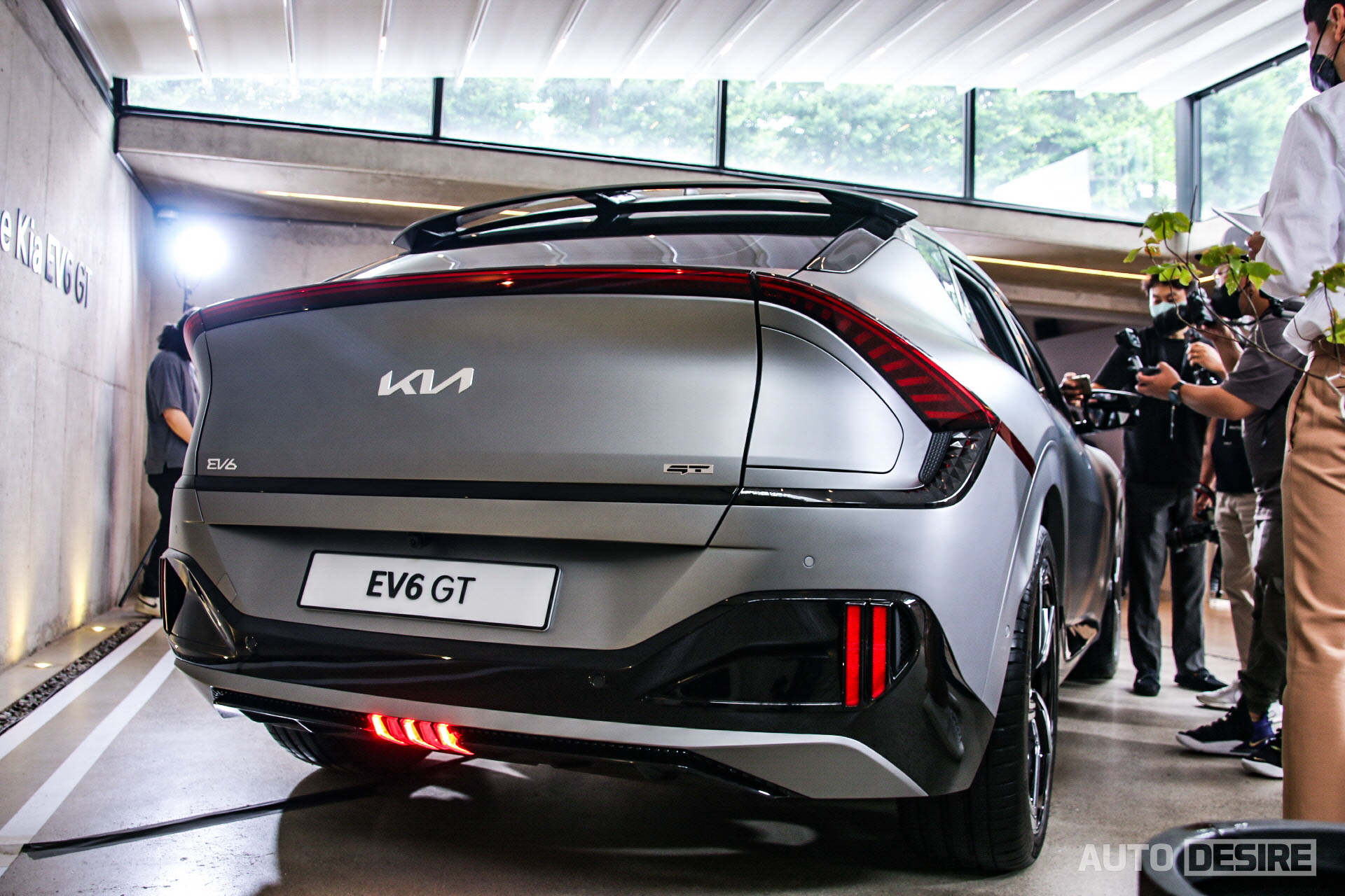 후면에서는 수직형의 리어 리플렉터와 범퍼 하단 램프까지 적용, 강한 존재감을 보여주는 EV6 GT는 현재까지 공개된 스펙으로 모터 최고 출력 430kW, 최대 토크 740Nm으로 환산 시에 최고출력 548마력, 최대토크 75.5kgf.m으로 정지 상태에서 100km/h까지 가속하는데 3.5초 밖에 소요되지 않는 뛰어난 가속 성능을 발휘한다고 한다. 공개된 영상을 통해서도 내연 기관이 적용된 쟁쟁한 스포츠카, 슈퍼카들과 경쟁하여 2위로 결승선을 통과한 바 있기도 하다.