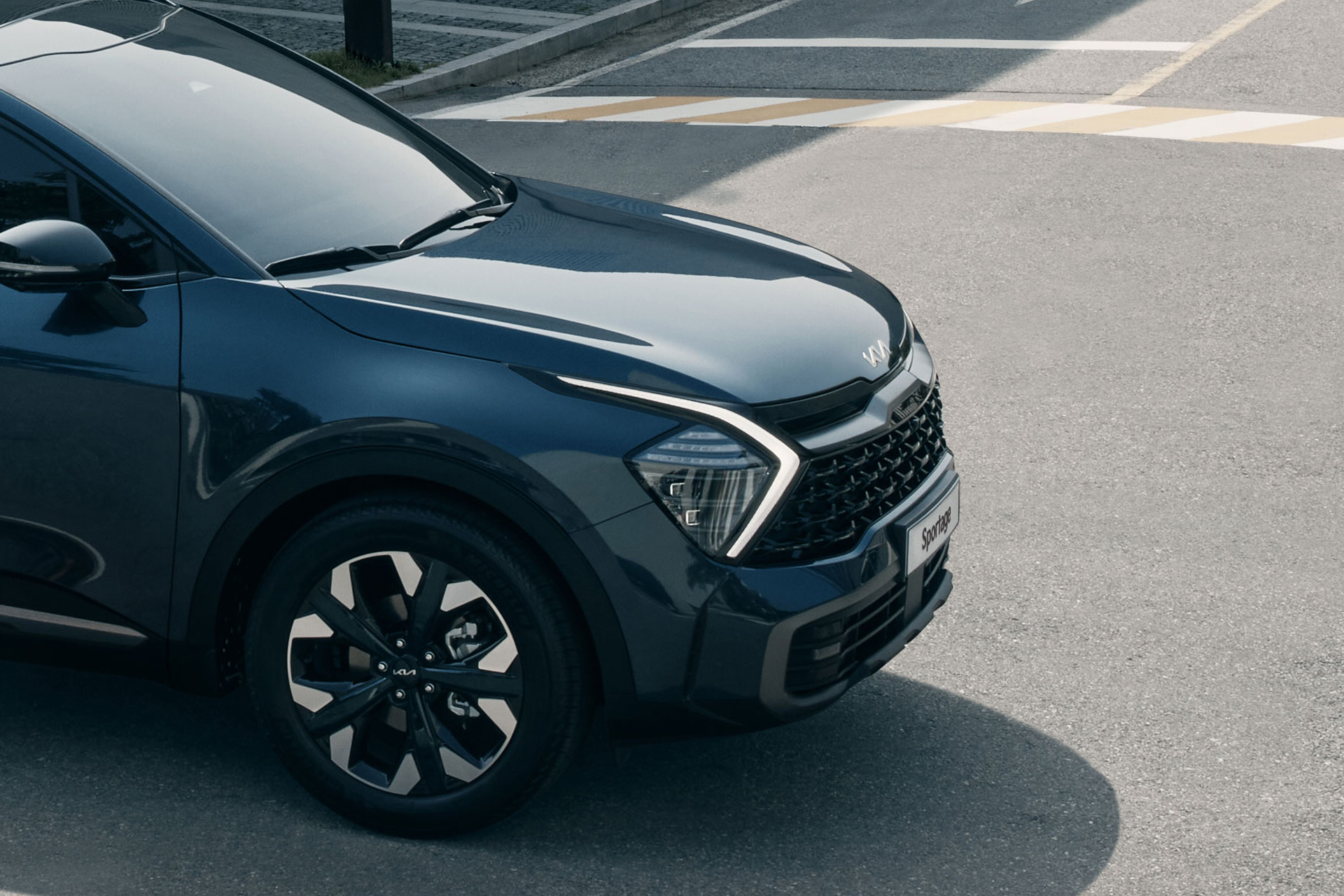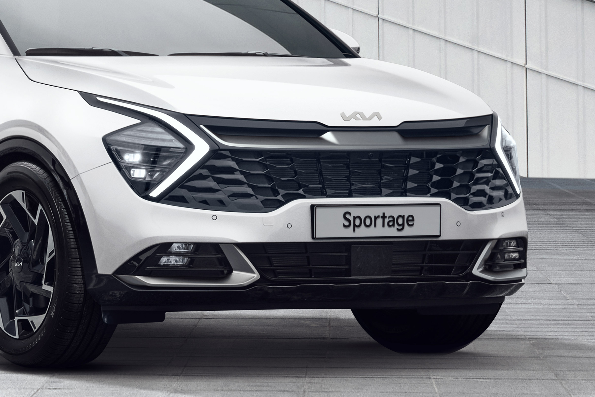 3세대, 4세대 스포티지 역시 역동적이고 도전적인 디자인을 보여줘 왔지만, 이번 신형 스포티지의 외관은 특히나 더 과감하고 파격적인 새로운 시도를 보여준다. 전면부에서는 테크니컬 패턴(메시 패턴)에 유광 블랙 컬러를 적용한 타이거 노즈 그릴을 거의 전면부 전체를 차지할 정도로 굉장히 큰 사이즈로 적용했으며, 여기에 부메랑 형태의 주간 주행등이 적용된 LED 헤드램프와 연결해 기존 스포티지와는 전혀 다른 새로운 인상, 미래적인 이미지를 구현했다.