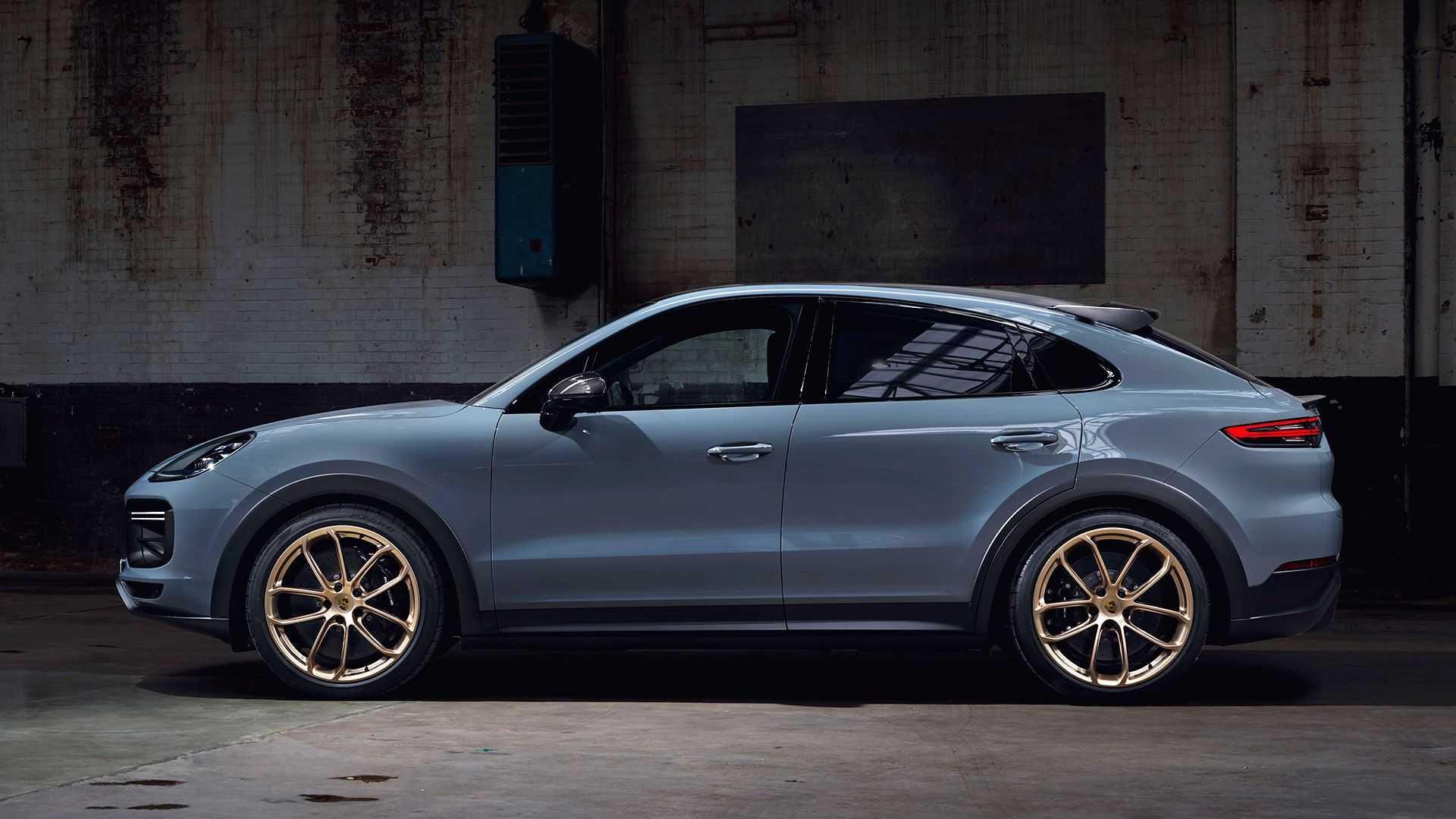 외관에서는 금빛으로 예쁘게 도색된 22인치 휠과 함께 카에인 터보 GT에 맞게 커스텀 된 피렐리 피제로 코르사 타이어가 장착되고, 루프와 리어 디퓨저, 스키드 플레이트, 리어 윙은 카본으로 적용된다. 가변식 스포일러에는 51mm 폭의 플랩을 더해 카이엔 터보 쿠페보다 2배 사이즈가 더 커졌다. 듀얼 머플러 팁은 범퍼 중앙에 위치하며 파이프는 티타늄으로 제작해 무게를 18kg 가량 더 줄였다.