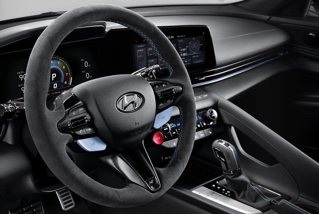 실내에서는 N 전용 스티어링 휠, N 전용 쉬프터, N 전용 시트, N 도어 스커프, 메탈 페달 등 N 전용 파츠들을 적용해 운전자가 일상 주행부터 트랙 주행까지 편안하게 운전에 집중할 수 있는 환경을 조성했다. N 시트의 경우 사이드 볼스터를 강화해 코너에서도 운전자를 단단하게 지지해 안정적인 운전 자세를 유지할 수 있게 도와주고, 옵션으로 기본 사양보다 10mm 시트 포지션이 더 낮아지고 N 엠블럼 조명이 더해지는 N 라이트 버킷 시트를 선택할 수 있다. N 라이트 버킷 시트는 기본 모델 대비 시트백 두께가 50mm 줄어들어 뒷좌석 거주성도 더 좋아진다. (통풍시트 기능은 제외)