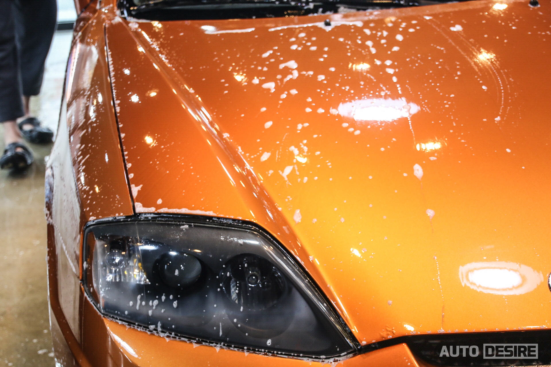 세차도 세차지만 특히나 이번 작업에서 메인은 부분 광택 작업! 앞서 언급했듯이 조수석 앞 펜더 상대가 좋지 않아 이 부분 복원이 필요한 상태였다. 사진에서도 보이듯이 펜더 상단부가 광택이 다 죽고, 허옇게 떠있어서 보닛과 확연하게 차이가 나는 걸 볼 수 있다. 아무래도 정확하게 클리어 상태가 어떻게 된 건지 알 수 없어서 직접 건드리기에는 리스크가 좀 있었는데 전문가에게 맡기면 답을 얻을 수 있을 것 같았다.