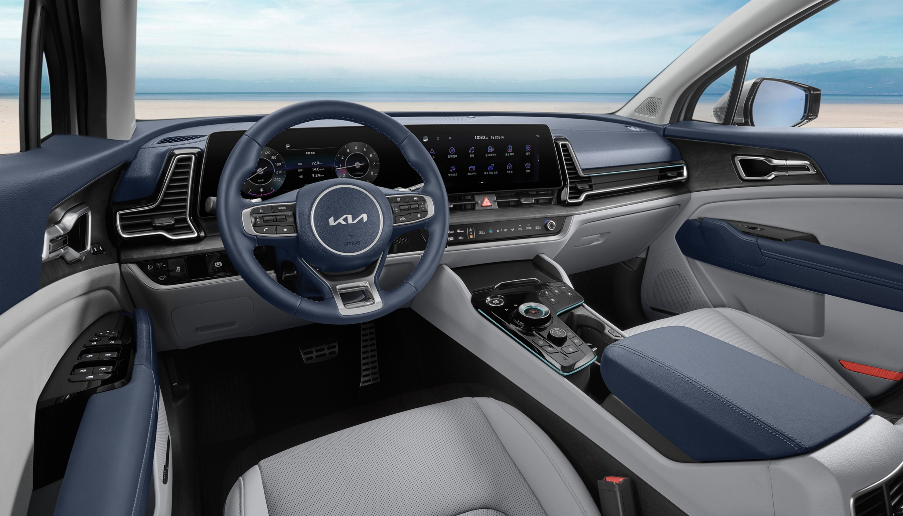 실내에는 준대형 세단인 K8과 동일하게 12.3인치 디지털 계기판과 12.3인치 인포테인먼트 시스템 디스플레이를 부드럽게 곡면으로 연결한 파노라믹 커브드 디스플레이와 인포테인먼트 시스템과 공조 기능을 터치로 통합해 조작할 수 있는 전환 조작계를 적용해 심플하고 고급스러운 구성, 뛰어난 화면 시인성을 전한다. 계기판 위치도 높이를 30mm 낮추고 클러스터 하우징을 없애 전방 시야를 더 넓게 확보했다. 이외에 기어 셀렉터도 다이얼 방식의 전자식 변속기를 적용하고, 센터 콘솔 높이를 향상, 회전형 컵홀더를 적용해 수납공간도 더 넓혔다.