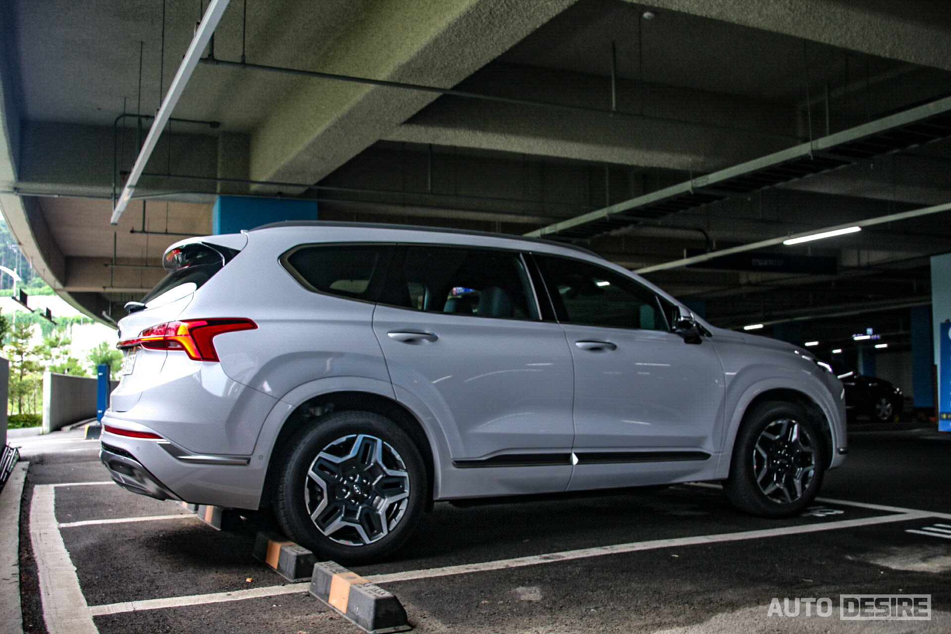 가솔린과 디젤 모델이 머플러 팁을 유지했다면, 그래도 하이브리드와 차이가 좀 있었겠지만 더 뉴 싼타페로 페이스리프트 되면서 액세서리 파츠를 선택하지 않는 이상 모든 라인업에 공통으로 머플러 팁이 적용되지 않고, 하이브리드 역시 동일한 모습. 조금은 허전해 보일 수도 있지만, 깔끔한 인상을 전한다. 별도 하이브리드 엠블럼도 없기 때문에 우리가 익히 봐왔던 더 뉴 싼타페의 스타일을 그대로 유지하고 있고 좌우를 연결한 리어램프와 수평형 리어 리플렉터 등이 최신 디자인 트렌드를 따르는 모습.