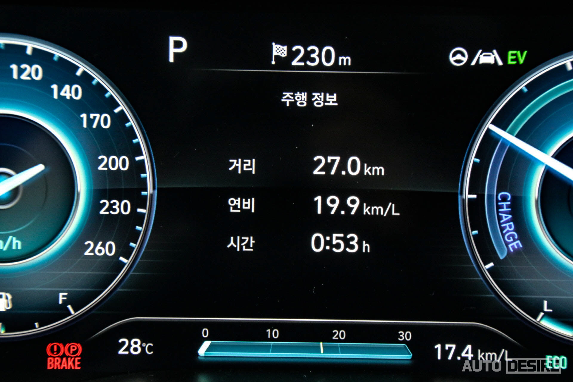 물론 가솔린 2.5 터보 모델과 비교하면 출력은 열세이고, 정숙성에선 비슷한 수준이지만, 하이브 리드답게 연비에서 확실한 강점이 드러난다. 고속도로 비중이 꽤 높았던 시승 기간 전체 연비 기록은 17.4km/L, 반납 날 일부 정체구간과 도시고속도로를 복합적으로 주행한 용인 기흥구청-서울 양재 더케이호텔 구간에서는 조금 더 좋은 19.9km/L를 기록했다.