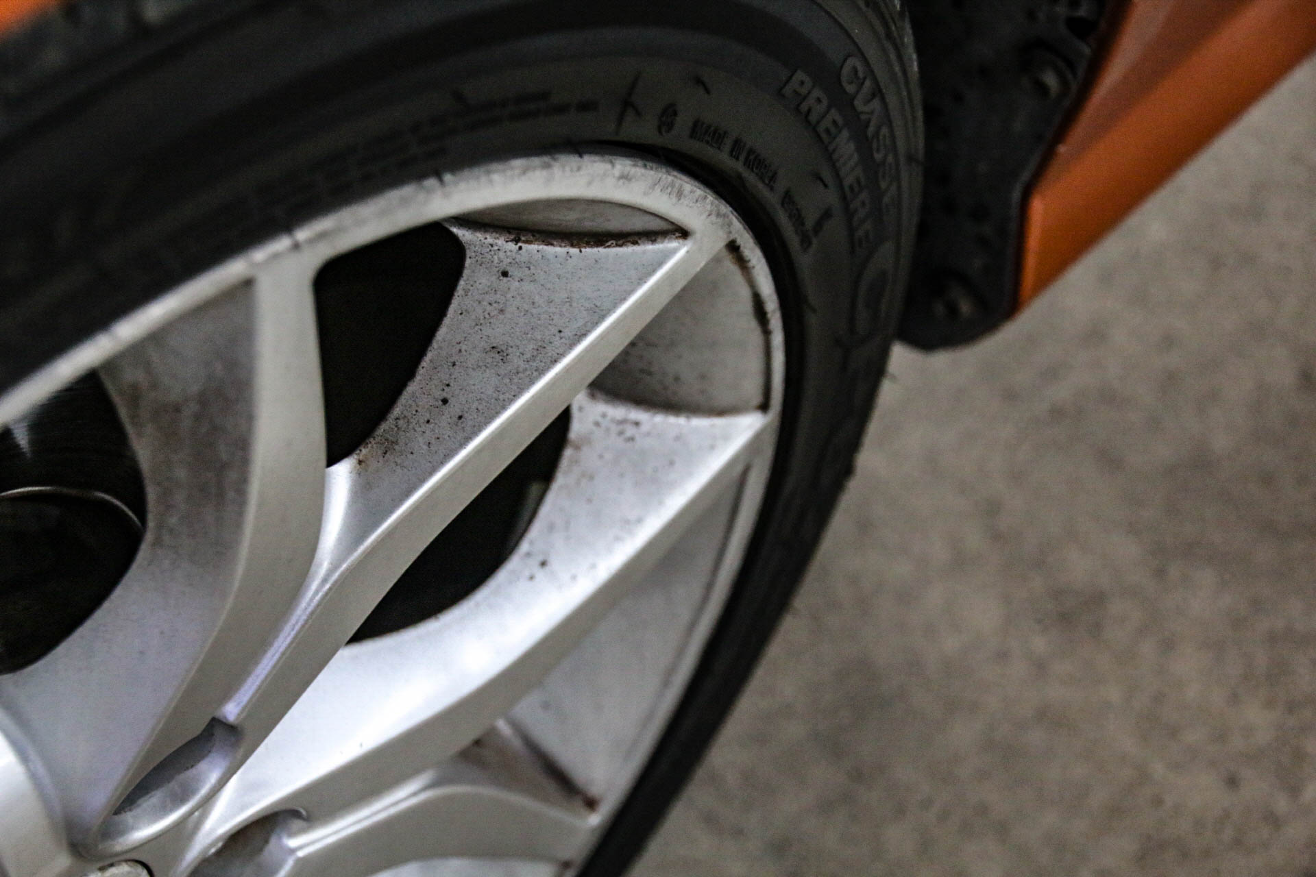 그렇다면 이제 휠에 직접 사용해볼 차례! 야간이기는 했지만 막 주행하고 온 차의 휠에 직접 분사하는 건 금물, 휠 뒤편의 브레이크 디스크가 열을 먹은 상태에서 분사하게 되면 디스크에 변형이 생기거나, 휠에도 얼룩이 남는 등 문제가 생길 수 있기 때문에 꼭 열이 충분히 식은 뒤에, 또 직사광선을 피해서 사용하는 것이 좋다.