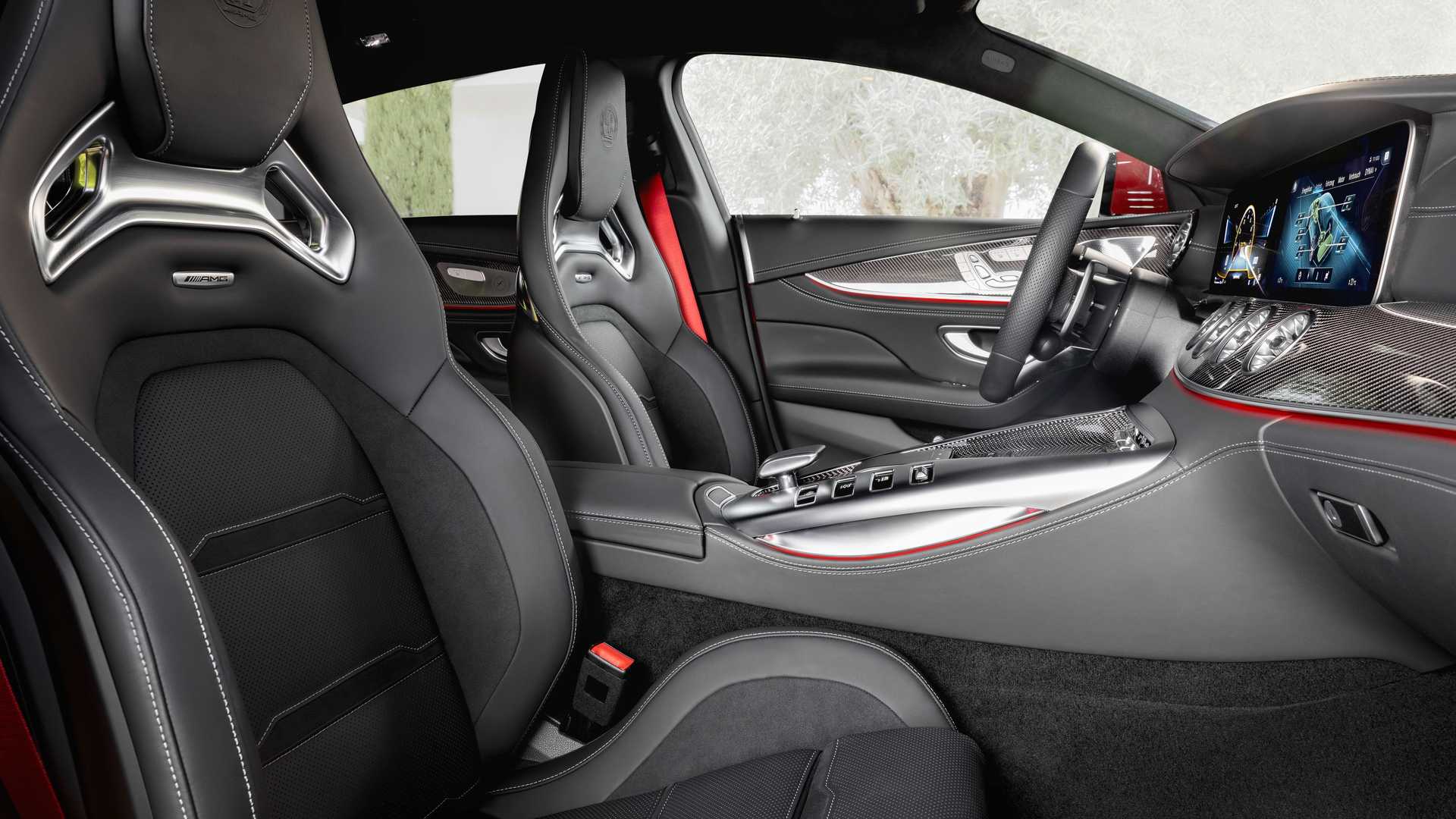 실내에서는 플러그인 하이브리드 파워트레인에 맞춰서 AMG-하이브리드 디스플레이가 인포테인먼트 시스템에 적용되고, 이를 통해 구동계의 에너지 흐름을 살펴볼 수 있다. 이 외에 햅틱 피드백 버튼이 적용된 신규 디자인의 스티어링 휠을 포함해 시트부터 실내 전체적인 스타일 역시 기본 GT63 4도어 쿠페 모델과 동일한 모습이다.