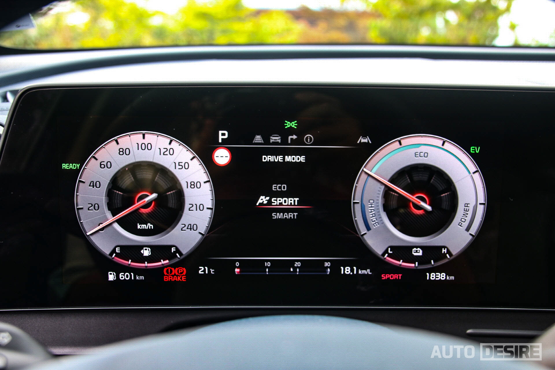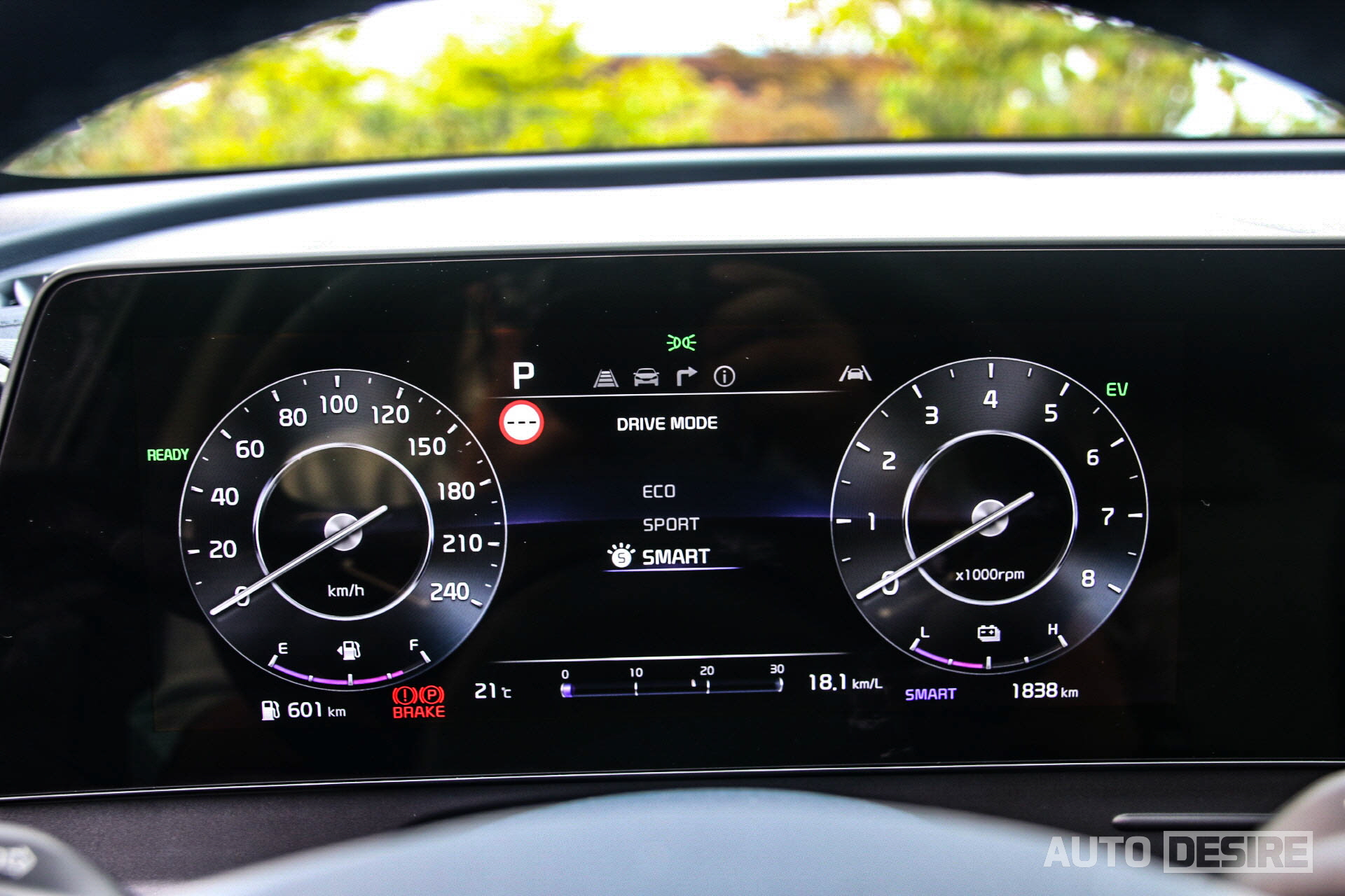 계기판은 다이내믹 테마를 비롯해 주행 모드와 연동되는 에코, 노멀, 스포츠 모드의 그래픽 테마까지 K3, K5, K8, 더뉴K9, 쏘렌토, 카니발 등 다른 기아차들과 같은 테마를 공유하기에 특별하게 새로울 것은 없지만 시인성이나 그래픽의 심미적인 부분에서는 만족스러워서 불만이 되진 않는다.