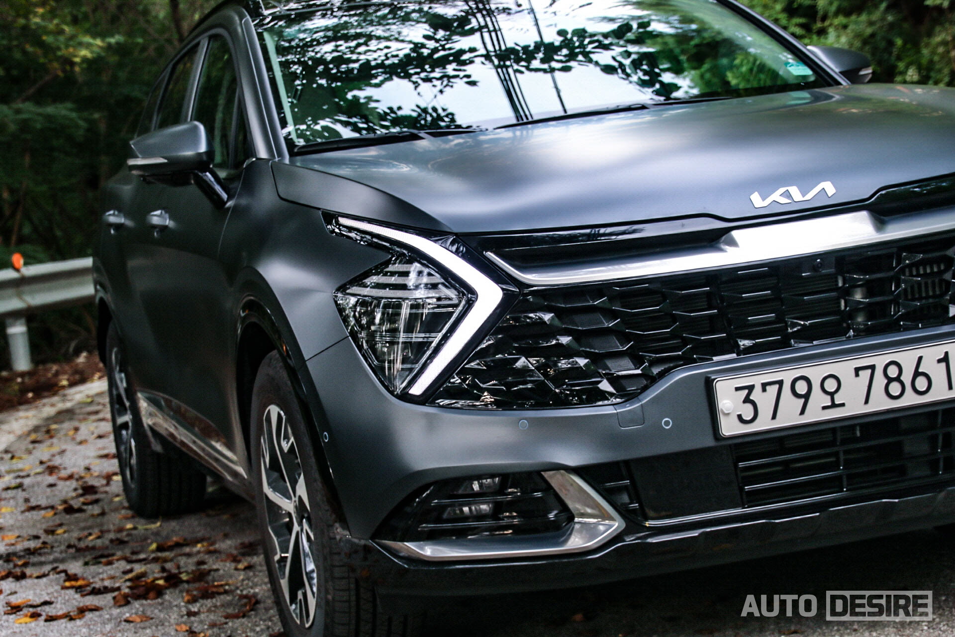 앞서 전시장에서 실물로 만나보기도 했고, 출고된 차량들이 도로 곳곳에서 보이기 때문에 이제 제법 친숙한 신형 스포티지이지만 외관의 스타일, 특히나 전면부의 인상은 다른 기아 차량들, 또 경쟁 차종들과 비교해도 독특하고 개성 있는 인상을 전한다. 호불호가 제법 갈릴만한 스타일이기는 하나, 현재 신형 스포티지의 인기를 보면 소비자들은 긍정적인 방향으로 보고 있는듯하며, 필자 역시도 볼수록 매력 있게 다가온다. 순정 외장 색상으로 무광 그레이가 제공되는 것도 특징.