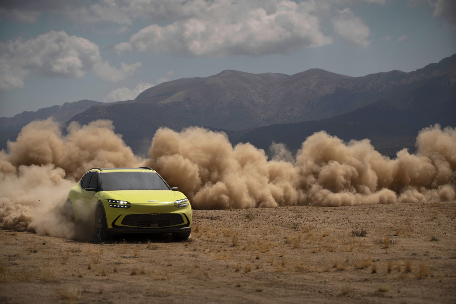 전면부에는 제네시스의 중요한 디자인 포인트인 쿼드램프를 적용함과 함께, 후드 상단에 슬림해진 신규 제네시스 로고를 적용하고, 헤드램프보다 더 낮은 위치로 내려간 신규 디자인의 크레스트 그릴로 기존의 제네시스 모델들과 사뭇 다른 인상을 주면서도 배터리 냉각 효율은 높이고, 범퍼의 전체적인 디자인과 함께 스포티한 느낌을 전한다. 후드는 펜더까지 하나로 이어진 클램쉘 후드를 제네시스 브랜드 최초로 적용해 깔끔하게 마무리했다.