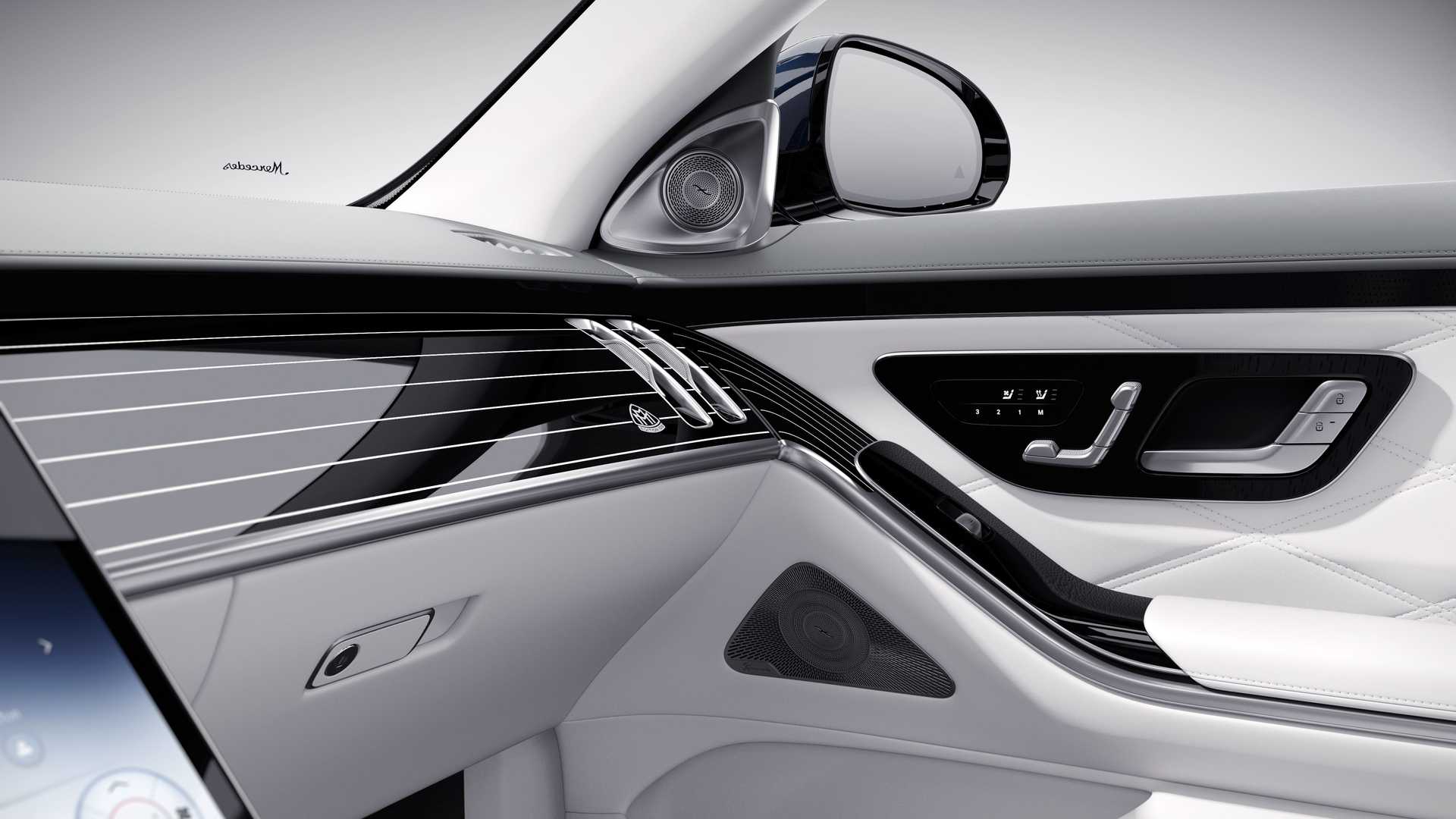실내는 크리스탈 화이트/실버 그레이 펄 컬러의 가죽 마감이 적용되고, 부메스터 4D 서라운드 사운드 시스템과 함께, 열선/마사지 기능을 포함해 마이바흐 라인업의 초호화 사양들이 적용되어 있다.