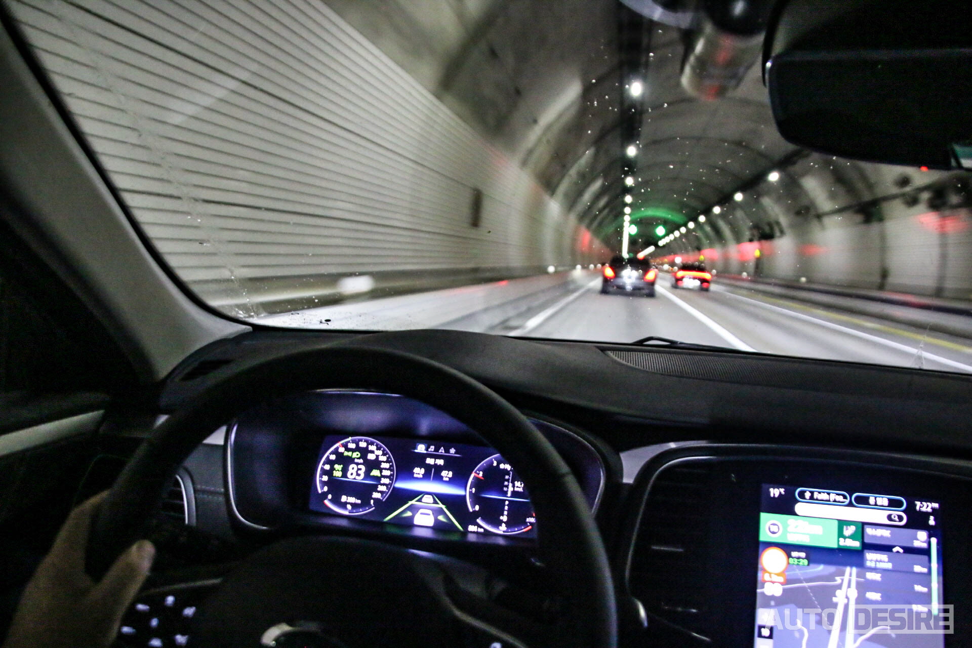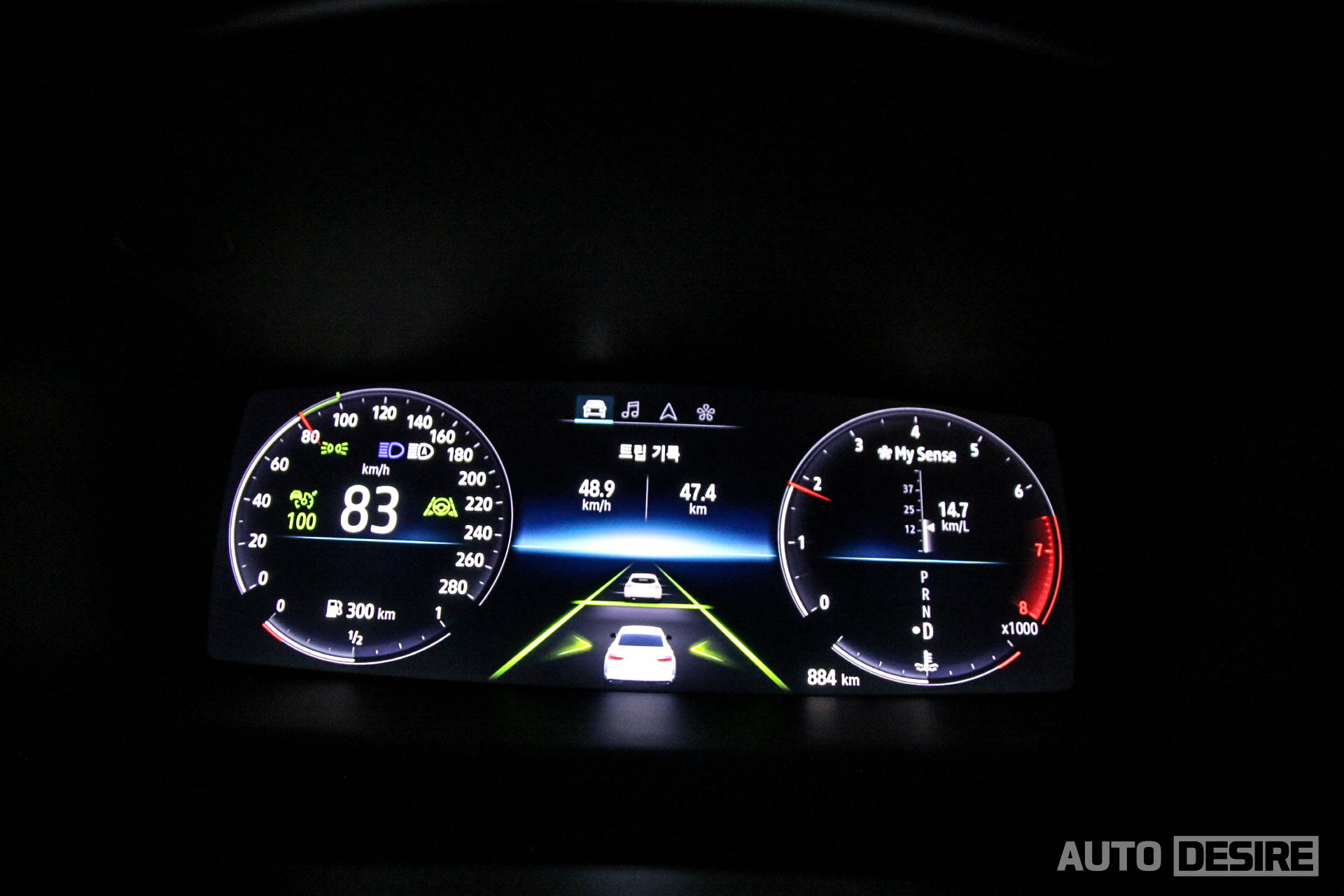 10.25인치 디지털 클러스터에는 맵-인 클러스터 기능으로 계기판 중앙에 내비게이션과 연동되어 경로 안내와 지도가 같이 뜨기 때문에 시선을 많이 이동할 필요 없이 정보 확인이 가능한데, 경로 안내 폰트 사이즈가 더 컸으면 하는 아쉬움이 남기는 한다.