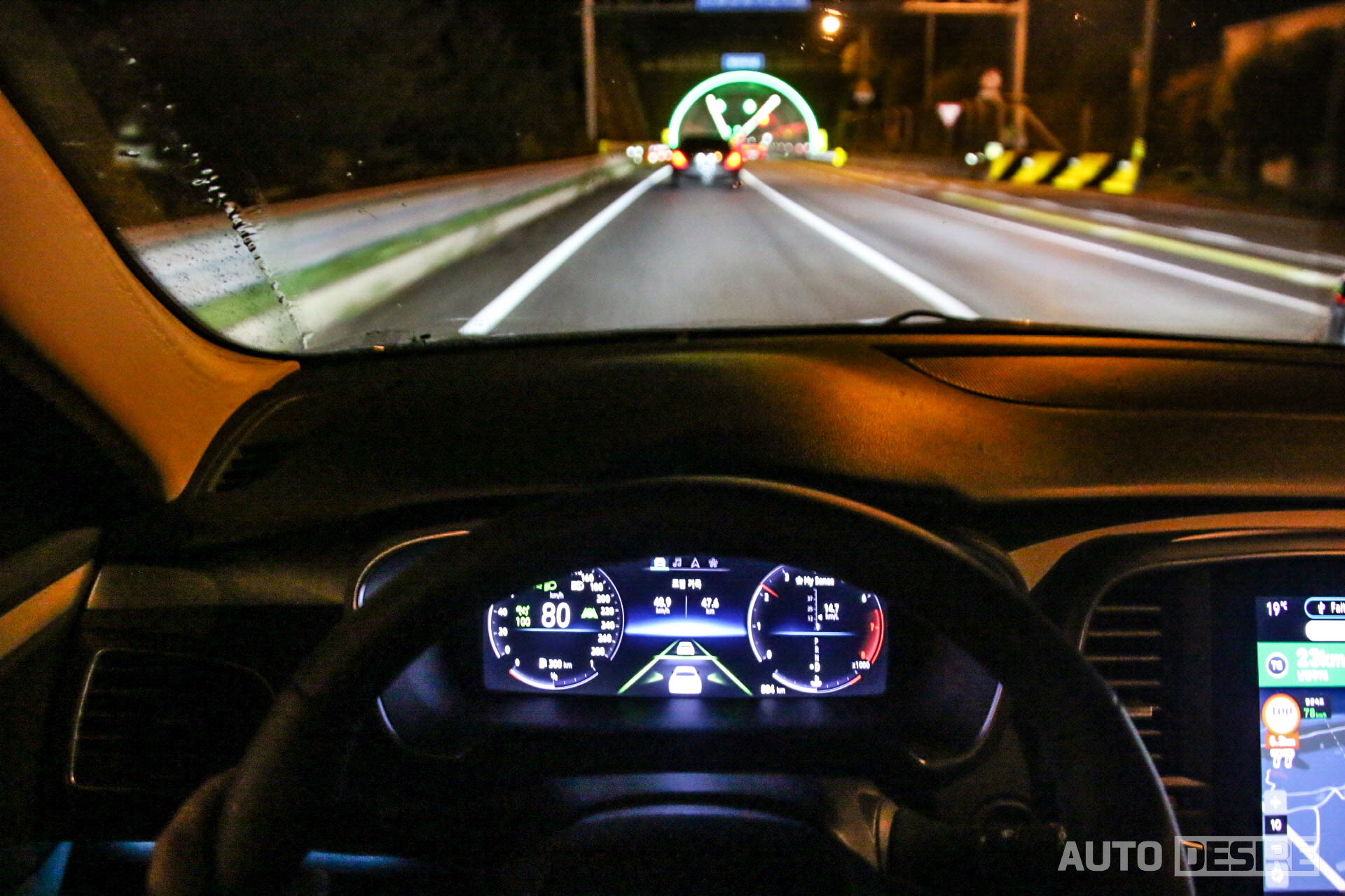 야간에 진행되었던 이번 시승행사의 다른 체험 요소로는 LED 매트릭스 헤드램프. 도로 상황 및 전방 차량, 대향 차량에 맞춰서 능동적으로 영역별 밝기를 조절해 주기 때문에 별도로 하이빔을 껐다 켰다 할 필요가 없어 야간에도 밝은 시야로 안전하고 편하게 주행이 가능했다. (LED 매트릭스 헤드램프의 오토 하이빔 기능은 헤드램프 AUTO 모드에서 작동하며, 상시 on 상태에서는 작동하지 않으니 참고.)