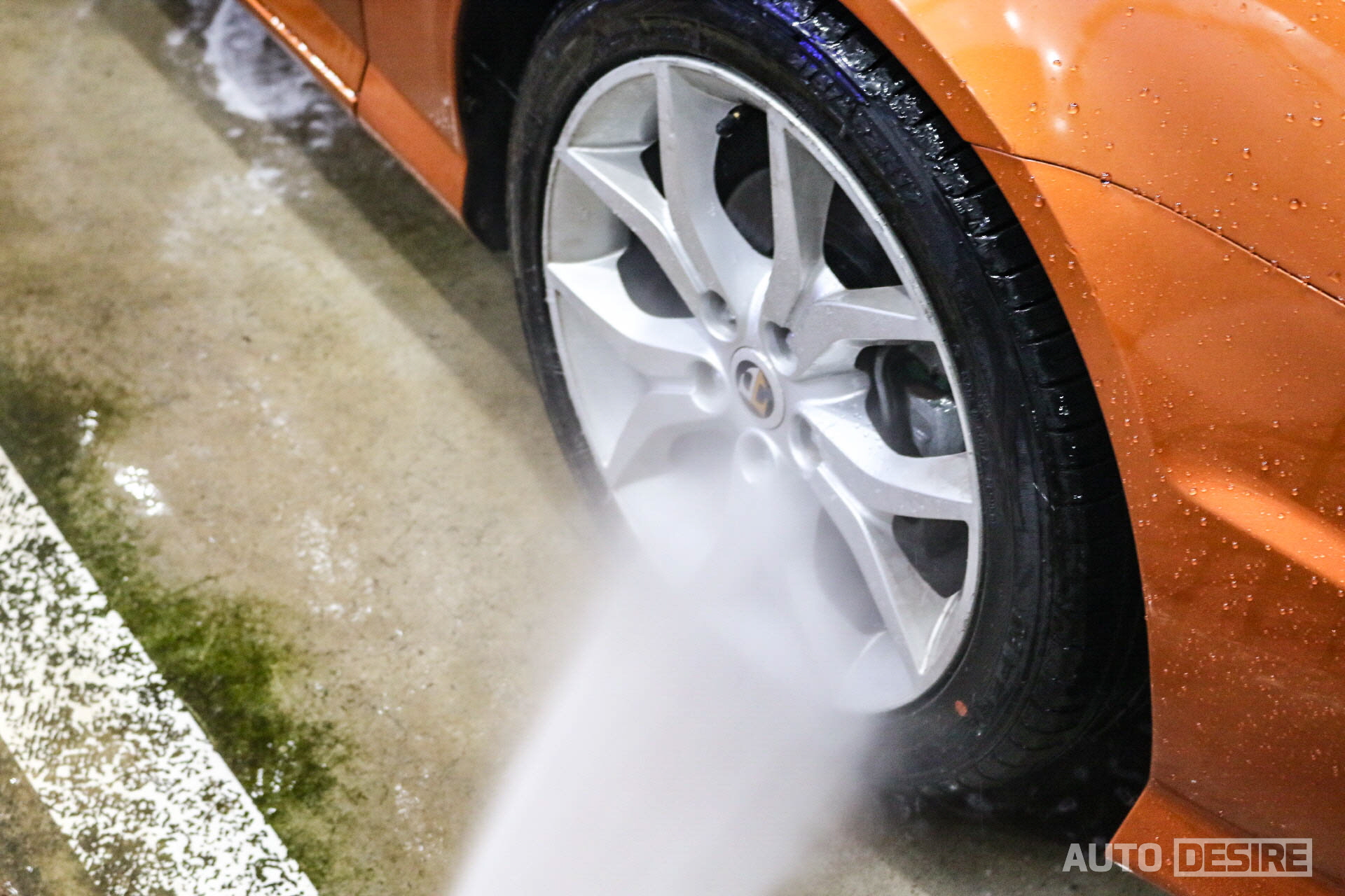 휠 세척하면서 차 전체적으로도 고압수 뿌려주면서 들러붙어 있던 흙먼지와 때들도 1차로 씻어내준다. 락킨카워시의 고압수 1회 사용 요금은 2,000원. 타 세차장 기본 요금보다 저렴한 가격으로 충분히 여유롭게 1차 고압수 세차를 끝낼 수 있다.