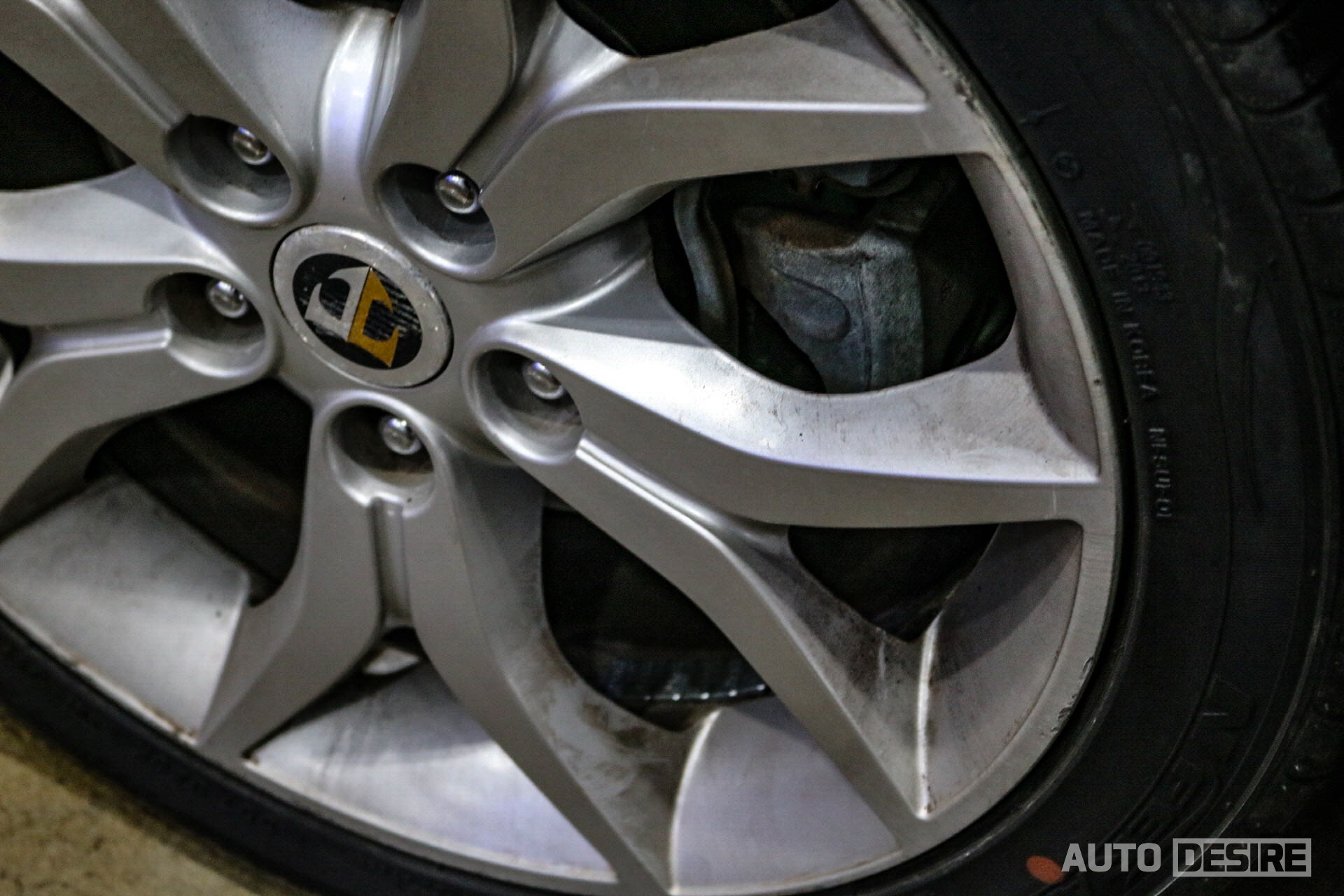 세차 안 한 티가 확 나는 또 다른 곳은 휠. 전에 세차 했을 때에 비하면 좀 덜한 편이긴 하지만, 한 달 정도 그냥 타고 다녔더니 은색 휠이 스멀스멀 까맣게 되어 가고 있다. 순정 브레이크 패드로도 분진이 꽤 나오는 편이라 휠은 꼬박꼬박 잘 닦아주어야 하는 편.