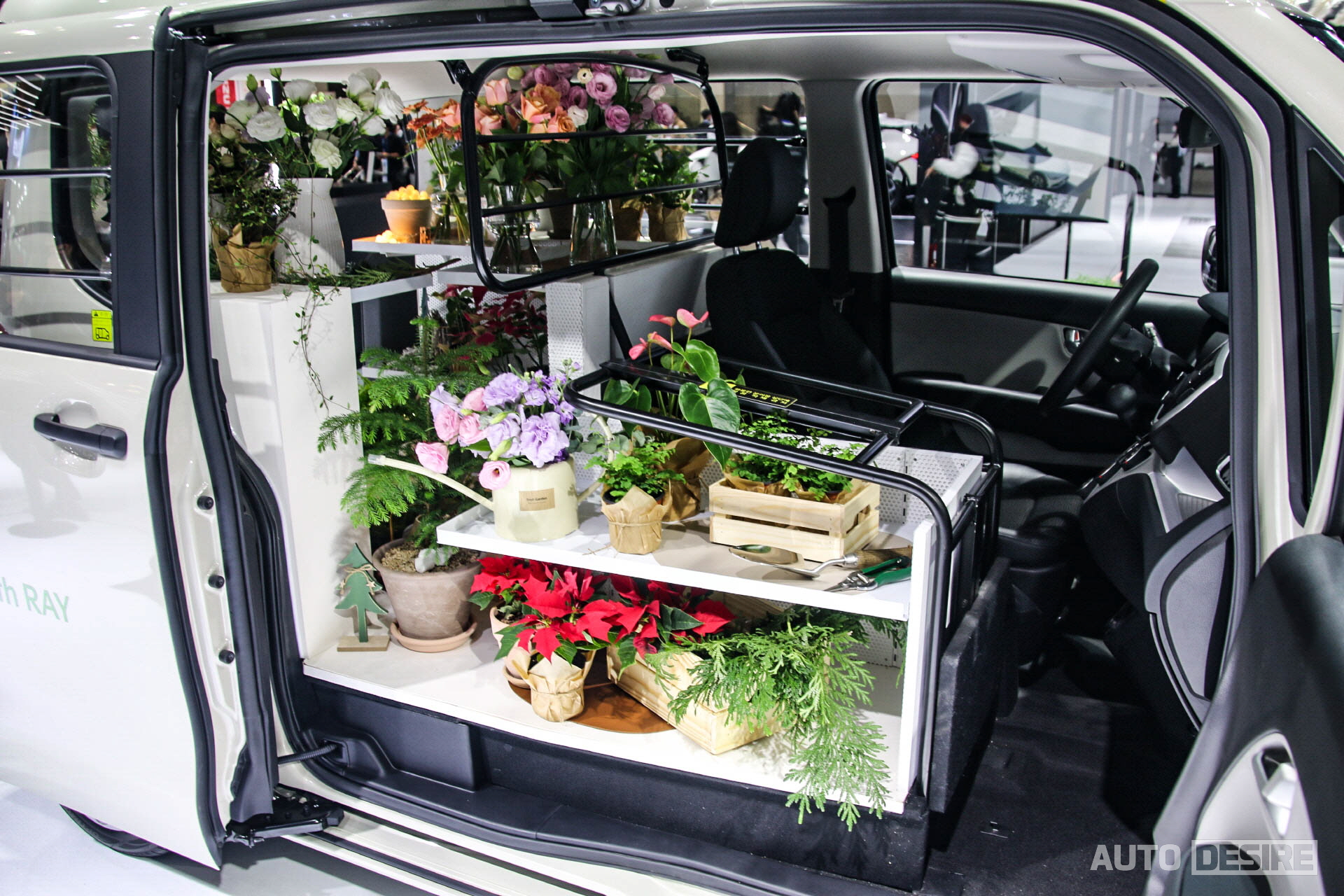 위드 레이 존에서는 레이 밴과 5인승 모델을 기반으로 꽃집, 카페, 1인 스튜디오, 캠핑, 피크닉, 영화관 등 다양한 컨셉으로 꾸며놓은 레이들을 살펴볼 수도 있다. 물론 이 외에도 현재 판매 중인 다양한 기아 라인업 차량들도 만나볼 수 있다.