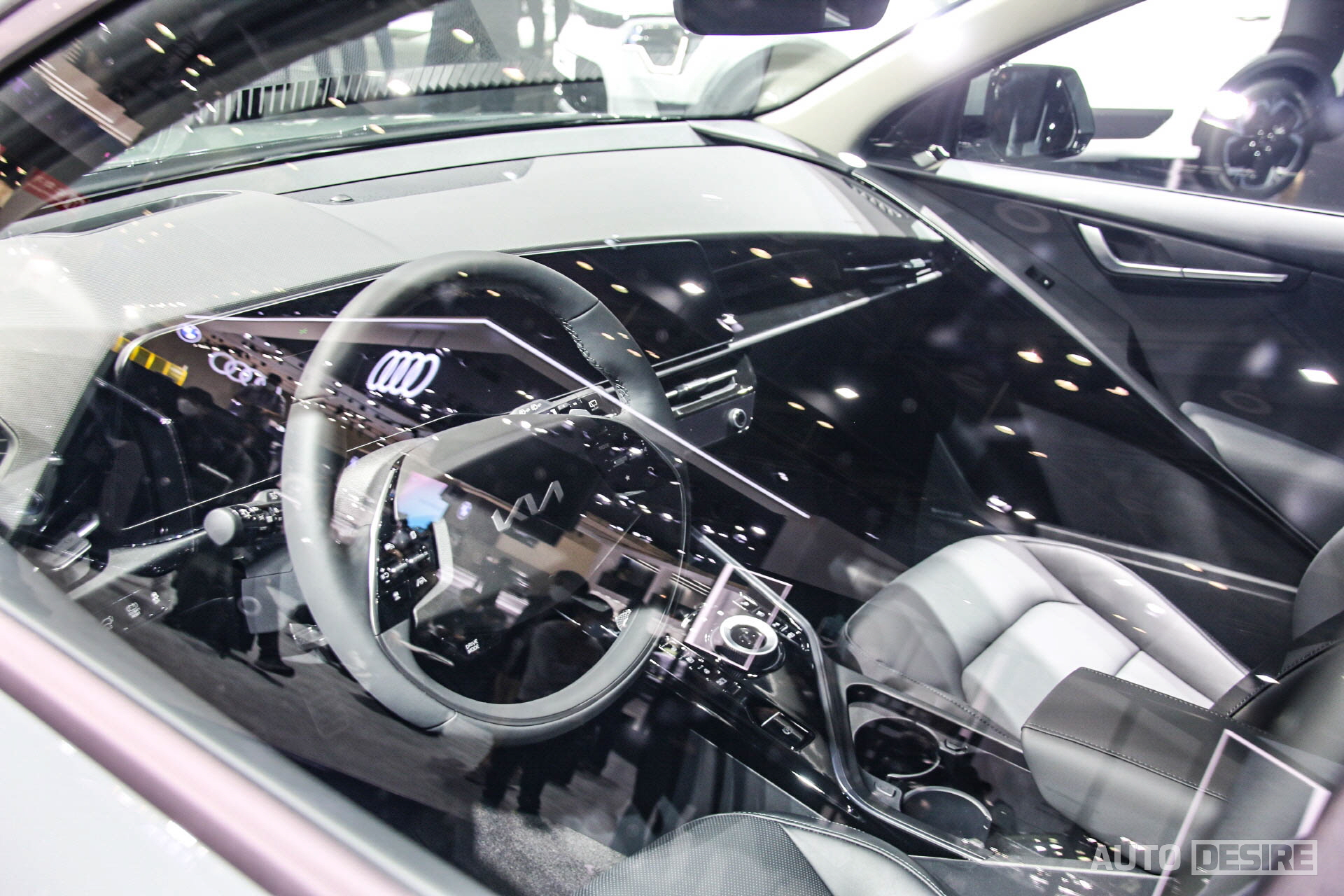 전시 차량은 실내까지 열어볼 수 없어 창문 너머로 살펴봐야 했지만, 이미 공식 이미지를 통해 공개되기도 했고 전체적인 구성에서 전용 전기차인 EV6와 상당히 흡사하는 것을 알 수 있다. 편의 기능 및 주행 보조 시스템, 기타 사양에 있어서도 EV6를 포함, 다른 기아 친환경 차량들과도 상당 부분 공유하는 수준으로 나올 것이라 예상된다.
