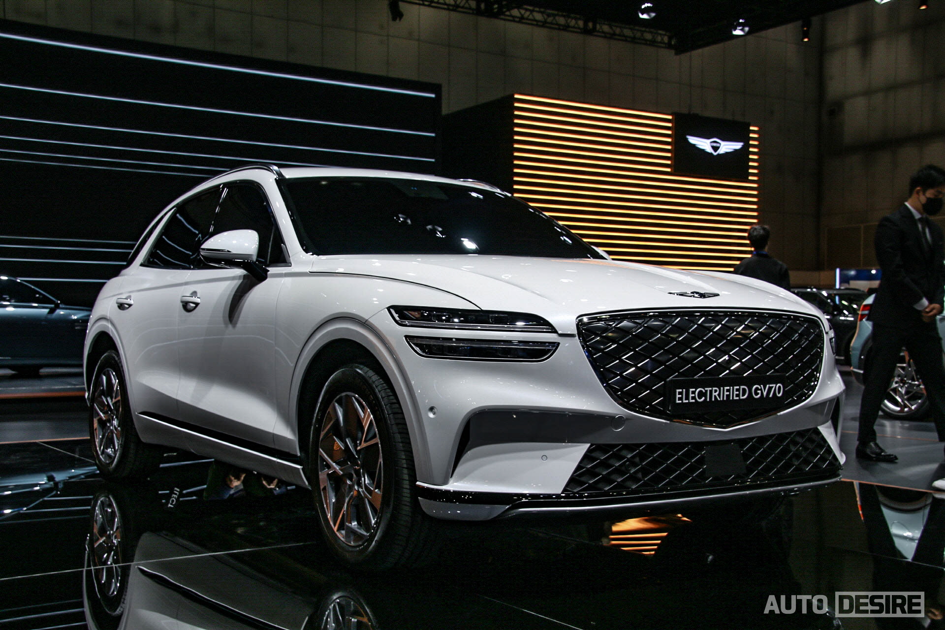 글로벌 최초 공개는 아니지만 국내 고객들에게 실물로 첫 공개하는 GV70 전동화 모델이 이번 제네시스 부스에서 가장 메인이 되는 차량이 아닐까 싶은데, 다만 GV70 내연기관 모델을 기반으로 하고 있고, 온라인을 통해 미리 봤듯이 시각적인 부분에서는 우리가 익히 알고 있던 GV70과 크게 다르지는 않다.