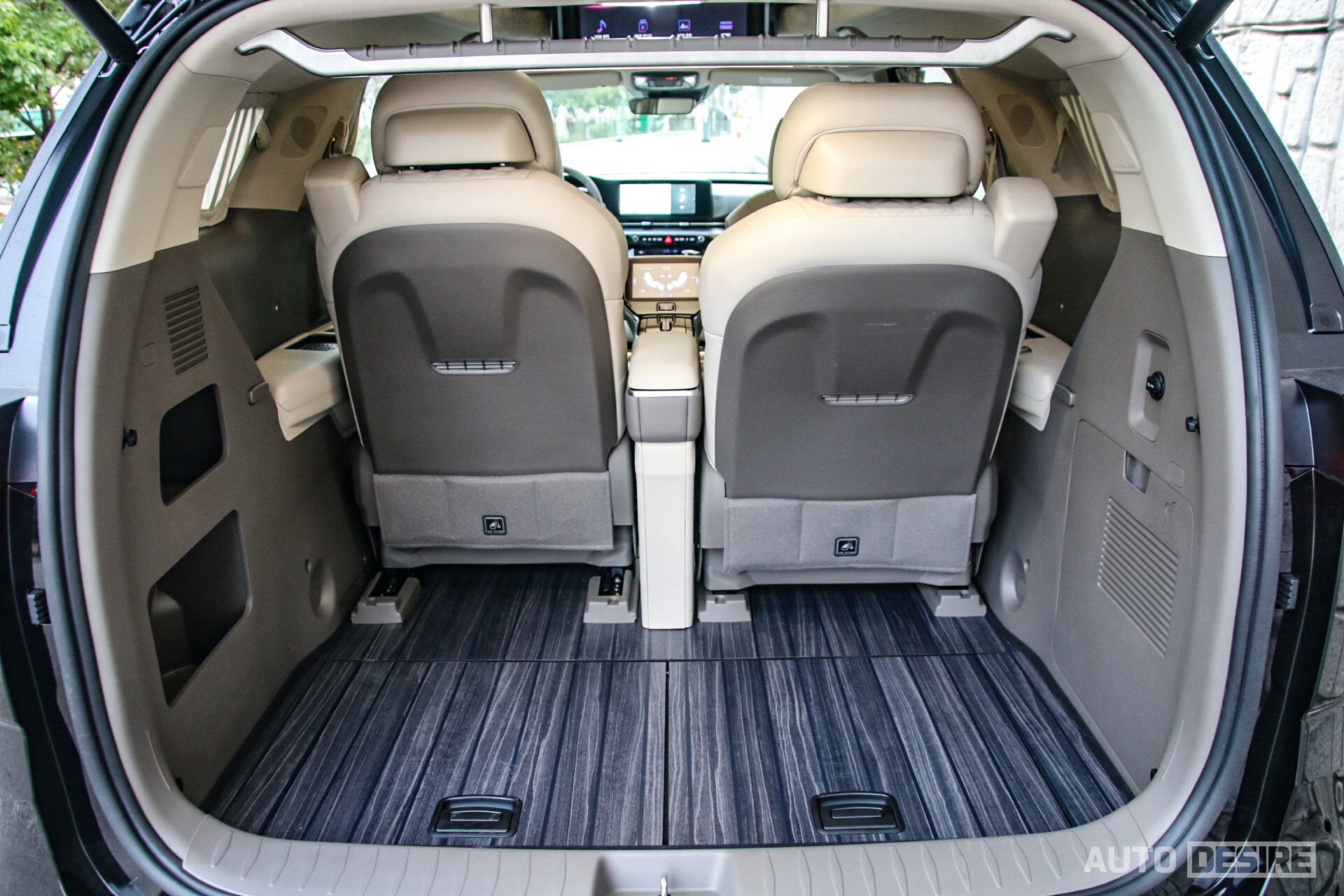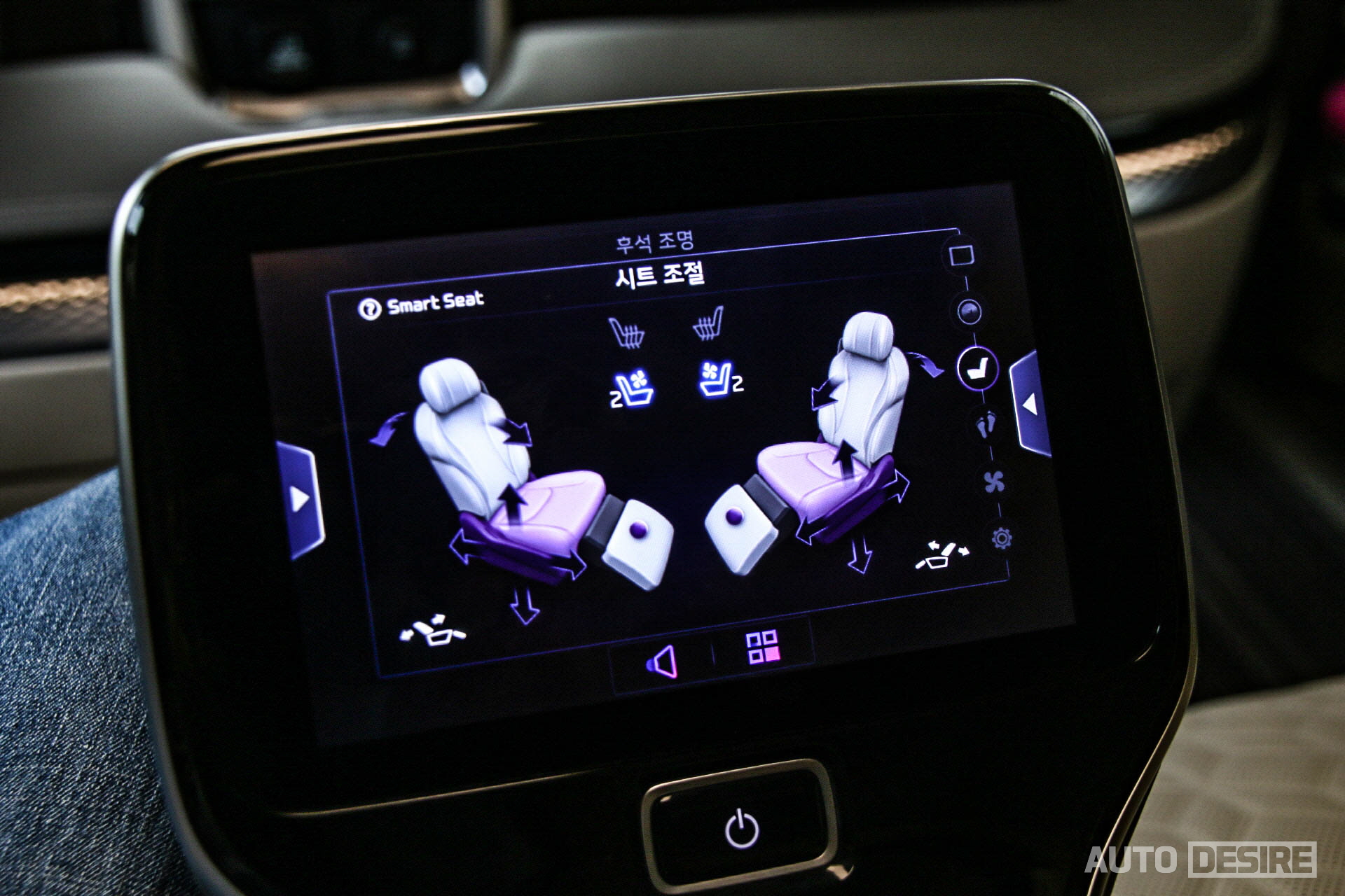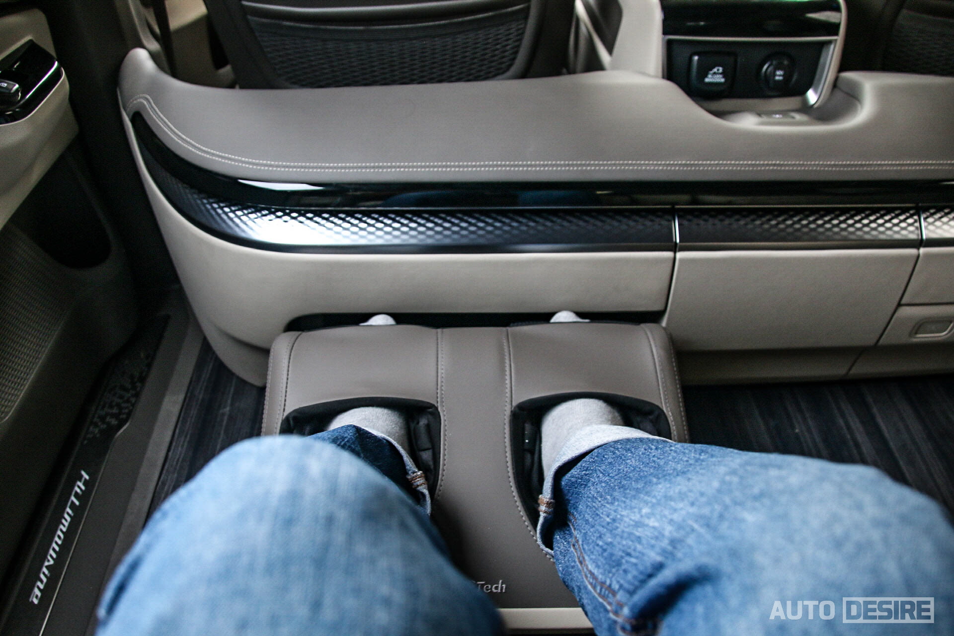 특히 더 만족스러웠던 것은 휴테크와 협업으로 개발해 탑재한 발 마사지기. 장거리 출장, 업무 등을 다녀오면서 이동 중에 발마사지까지 받을 수 있다고 하면 만족도가 정말 좋을 것 같다. 다만 운전석 뒤쪽 한쪽에만 있어 2열 승객 모두가 이용할 수 없다는 게 아쉬움이 남는다. 조수석 뒤쪽 같은 위치에는 마사지기 대신 수납공간이 있고, 중앙에 냉/온장고가 위치한다.
