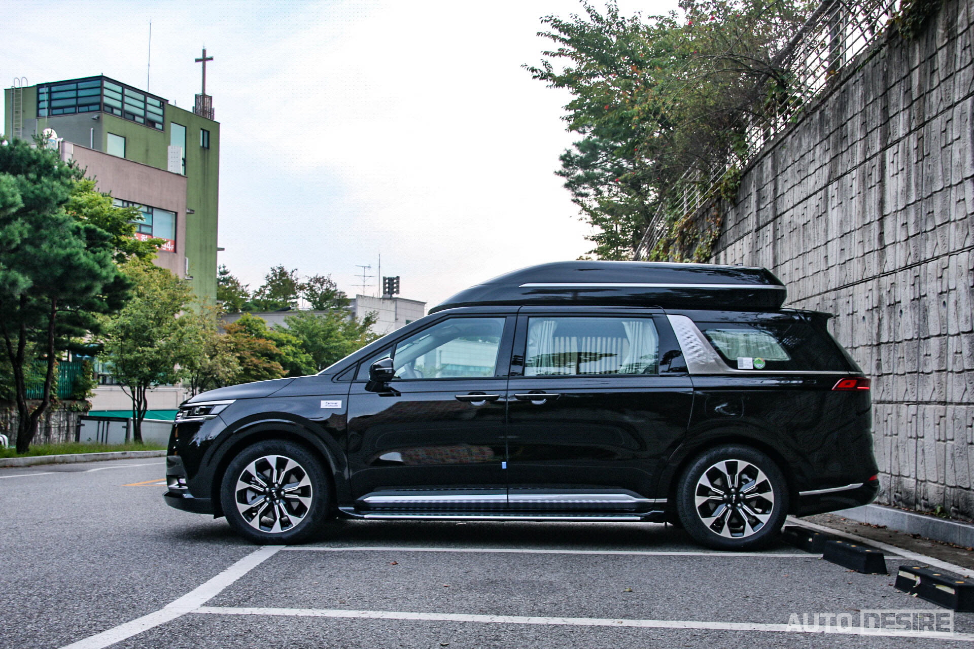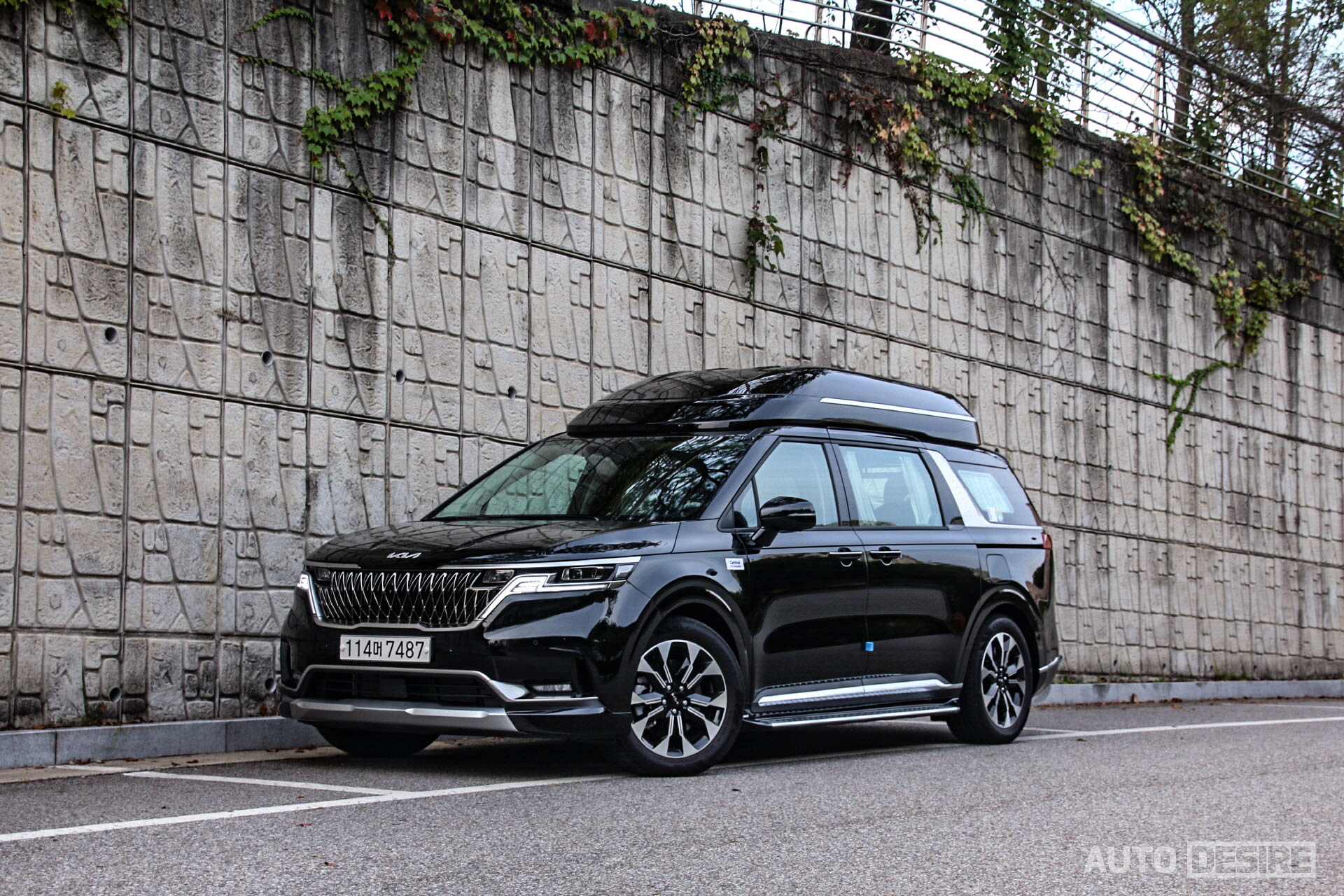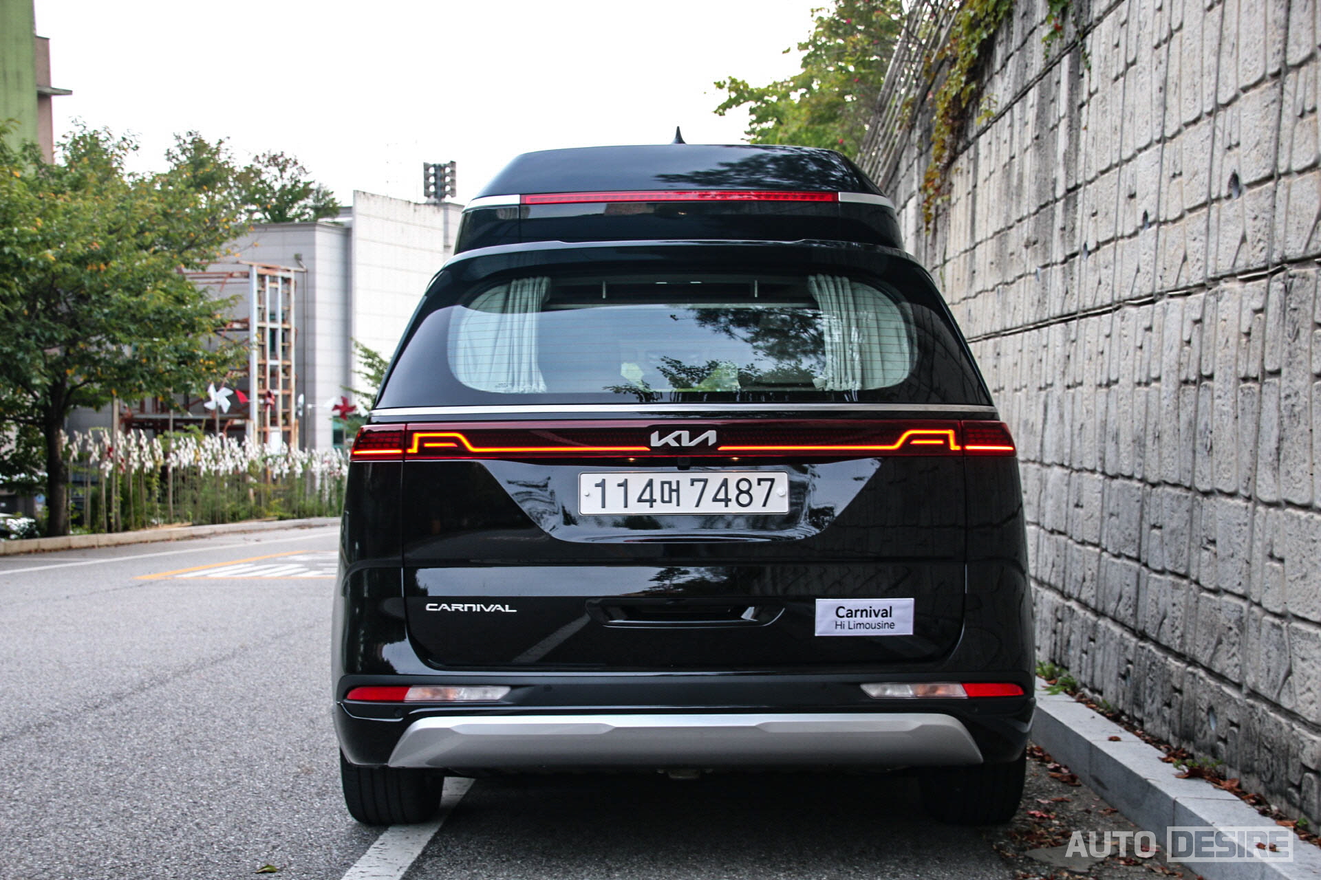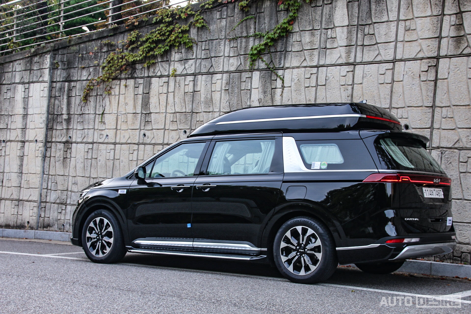 여기에 실내 공간을 더 넓게 확보하기 위해 하이루프가 적용되고, 루프 후면에 수평형 LED 보조제동등이 추가, 리어 범퍼 하단에도 스키드 플레이트와 범퍼 가드가 추가되는 등 역시나 외관 모든 곳에서 앞서 탔던 카니발 하이리무진 7인승 모델과 차이가 없는 모습이다. 다만 확실히 흰색보다는 검은색이 좀 더 무게감이 있는 모습이다. 이 외에 연식 변경에 따라 CARNIVAL 레터링 필체가 변경된 정도. 개인적으로는 일반 카니발과 하이리무진 모델 간에 휠 디자인 정도는 차별을 두었어도 좋지 않았을까 아쉬움이 남기는 한다.