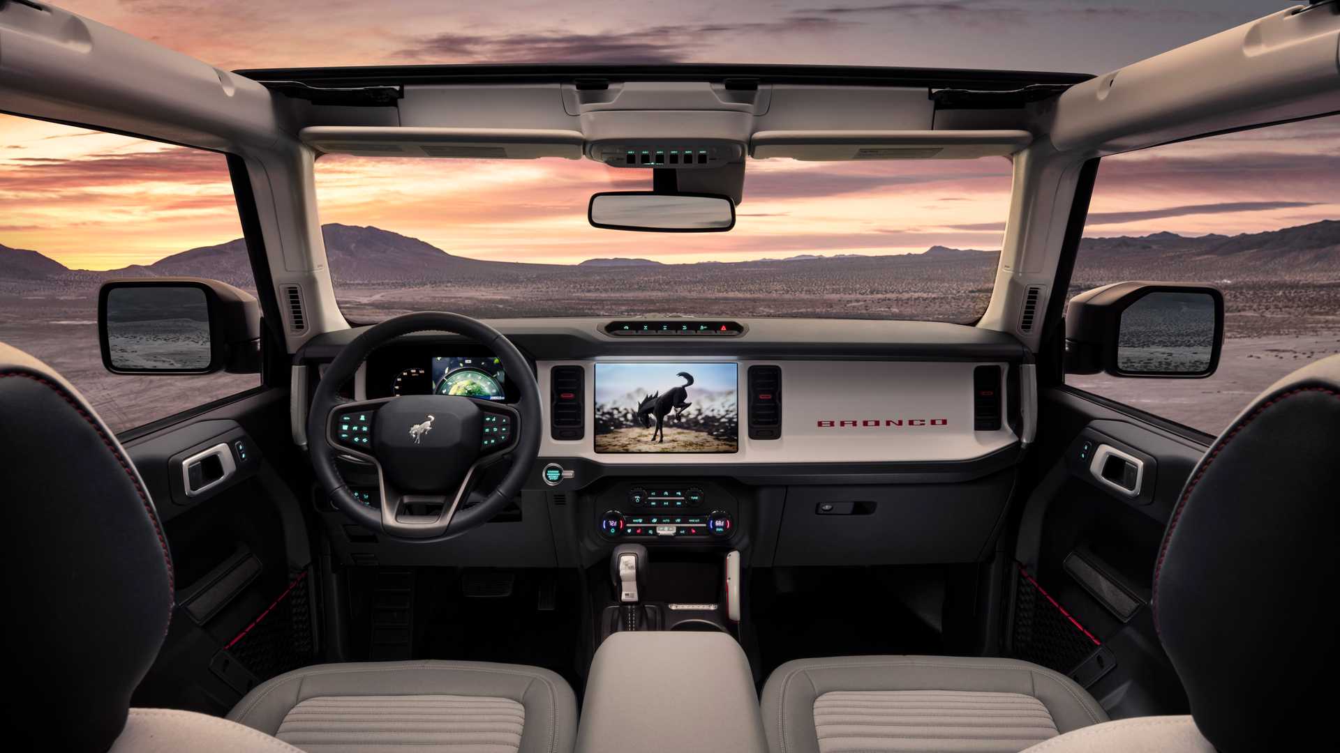 탈부착 가능한 도어와 루프 덕분에 다양한 아웃도어 환경에서 다른 차량들과 차별화된 개방감을 느낄 수 있는 것 역시 브롱코의 장점 중 하나이며, 탈거한 도어는 전용 보관 가방에 넣어 트렁크에 보관할 수 있다. 도어를 탈거했을 시에도 시야 확보에 문제없도록 사이드 미러는 도어가 아닌 차체에 장착되어 있다.