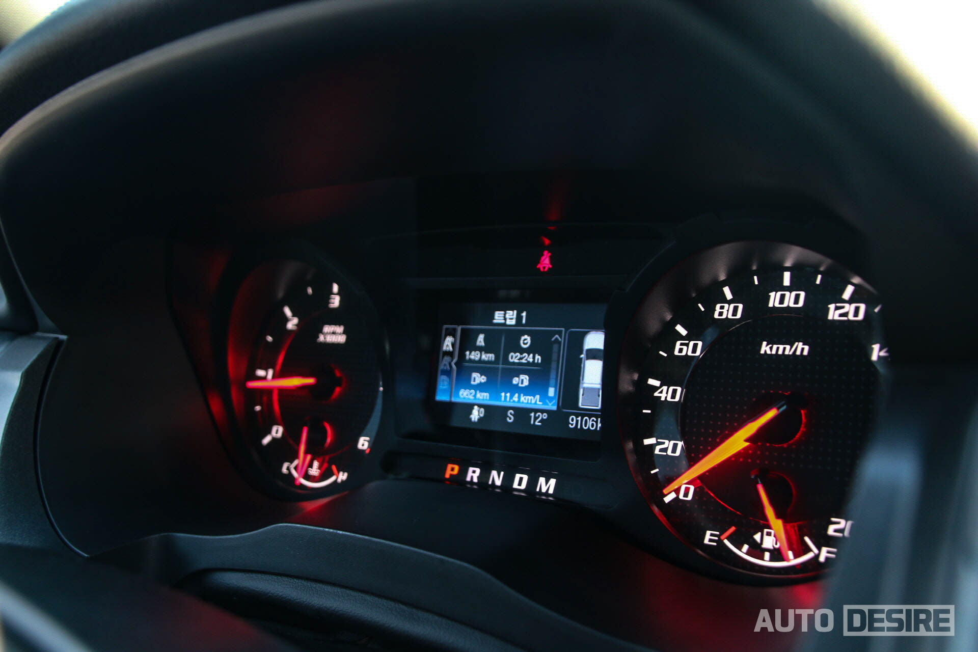 여기에 일반 도로에서도 와일드트랙보다 승차감이 더 편했는데, 오프로드 튜닝이 된 차량은 포장도로에서는 불편할 거라는 예상과 달리 후륜에 리프 스프링 대신 일체형 코일 스프링과 쇽업쇼버를 장착해 통통 튀거나 쿵쿵대지 않고 훨씬 더 부드럽고 요철이나 방지턱에서 충격이 적은 승차감을 전해준다. 폭이 넓은 올 터레인 타이어도 노면 소음이 그리 크지 않은 편. 아이들링과 가속 시의 디젤 엔진의 약간 거친 소리와 풍절음 정도가 나는 정도로 전반적으로 승차감과 정숙성에서 랩터가 더 만족스러웠다.