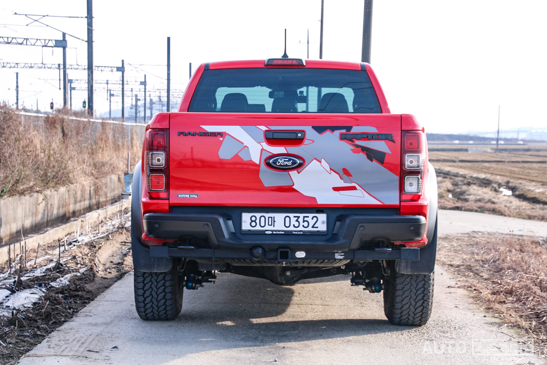 외형에서부터 와일드트랙과 제법 큰 차이를 보여주는 레인저 랩터지만 사실 파워트레인 구성은 동일하게 바이터보 2.0리터 4기통 디젤 엔진과 10단 자동 변속기가 적용된다. 최고출력 213마력, 최대토크 51.0kgf.m로 수치 상의 출력도 동일하다. 오프로드 튜닝을 거치고 차폭도 더 넓어지고, 타이어도 훨씬 큰 사이즈가 들어가는 만큼 초반 반응성은 약간 굼뜬 듯한 느낌도 있기는 하지만 2.0 바이터보 디젤 엔진의 기본적인 토크가 강력하기 때문에 힘이 부친다는 느낌은 없고, 가속이 빠르다기보다는 일반 도로와 고속도로뿐만 아니라 경사로, 험로에서도 풍부한 토크감으로 순간적으로 강하게 치고 나가주는 모습이다. 10단 자동 변속기의 변속 반응과 변속 충격 등 느낌은 와일드트랙과 대동소이한 정도.