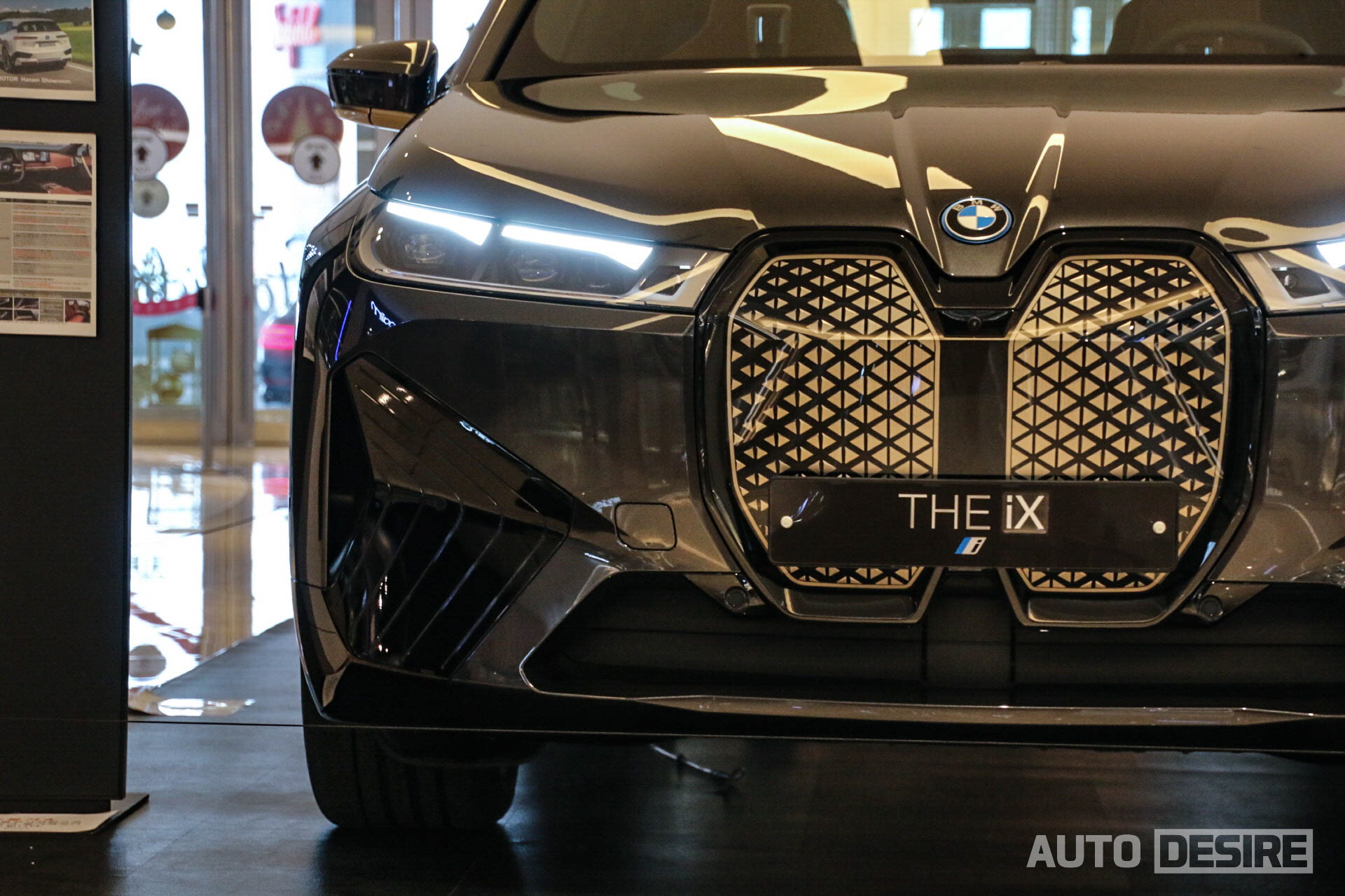 첫 공개 당시 이미지를 통해 접한 첫인상은 제법 낯설게 느껴졌던 iX이지만 실물을 직접 보니 실물이 사진보다 어색함이 적고 BMW의 특유의 역동성과 함께 BMW만의 아이덴티티가 강하게 드러나는 모습이다. 이제 제법 친숙해진 커다란 키드니 그릴은 iX의 강한 존재감을 드러내며, 특유의 패턴과 블랙 라인으로 특유의 고급감과 스포티한 느낌을 준다. 수평으로 날렵하게 자리 잡은 레이저라이트 헤드램프와 날카로운 선의 범퍼 디자인이 SUV, 전기차에서도 '운전의 즐거움'을 중시하는 BMW의 필링을 시각적으로도 잘 나타내고자 하는 것 같다.
