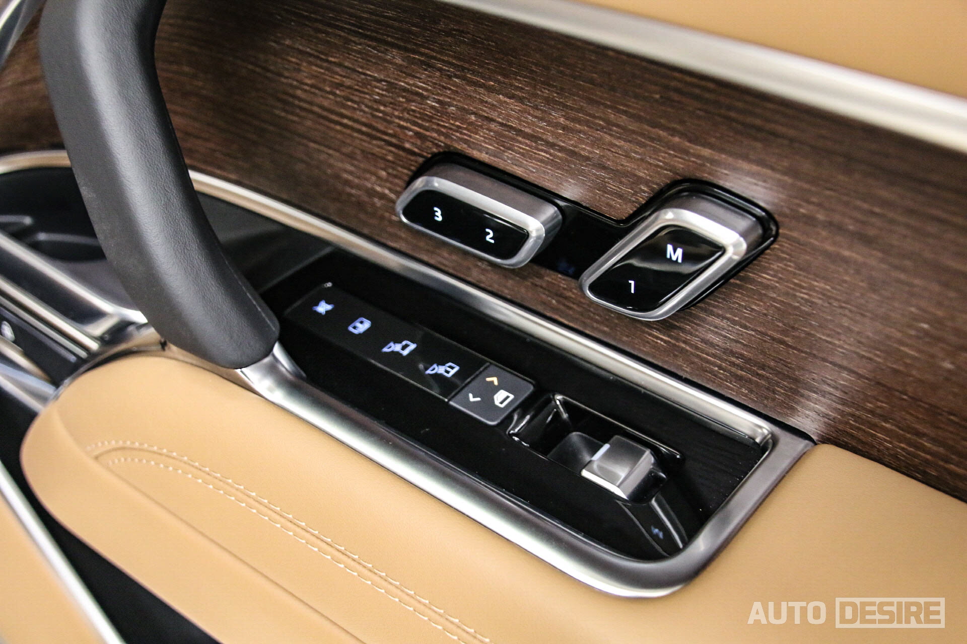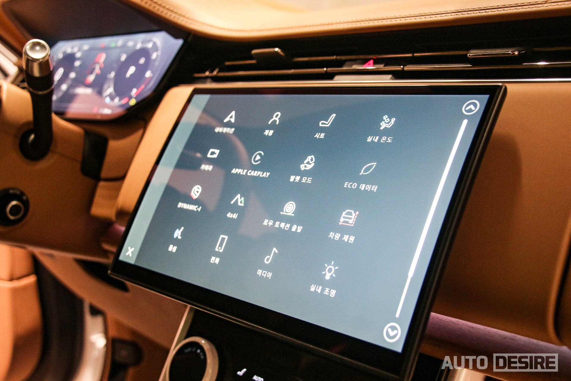또 하나 눈에 들어오는 변화는 바로 기어 셀렉터. 기존에는 다이얼 방식으로 작동했지만 토글 타입으로 변경되었고 고객 취향에 따른 차이는 있겠지만, 개인적으로는 다이얼 방식보다 더 직관적으로 다가오는 것 같다. 기어셀렉터 외에 센터 콘솔에서도 시동 버튼과 미디어 전원 및 볼륨 다이얼, 터레인 리스폰스 2 컨트롤 다이얼만 배치해 딱 필요한 기능들만 남겨놓고 군더더기 없이 깔끔하게 마감해 놓았다. 도어 트림의 파워 시트 조절 버튼도 메모리 기능까지 함께 통합되어 있다.