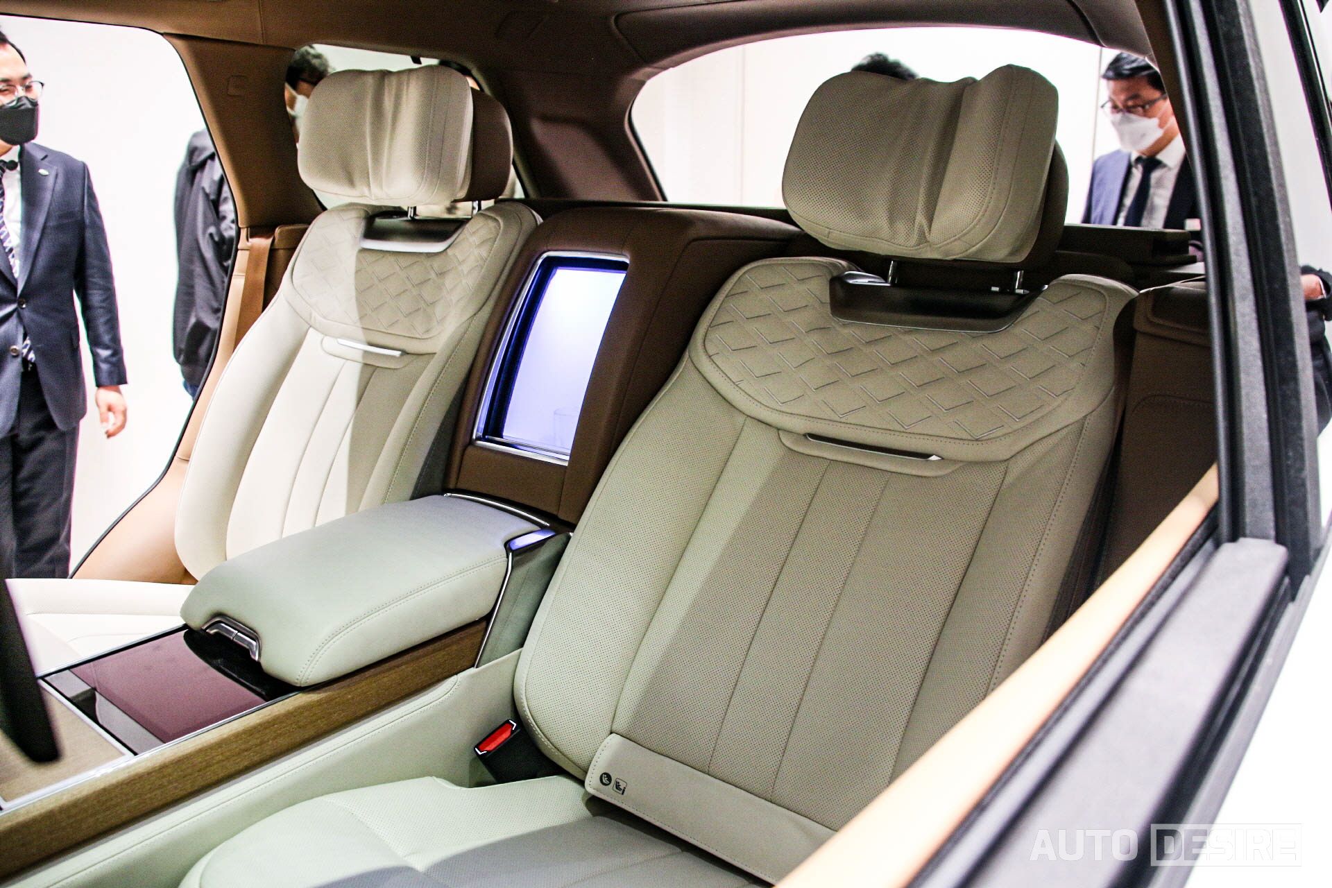 럭셔리 SUV이자 레인지로버 라인업의 플래그십 모델인 만큼 오토바이오그래피 모델에서도 2열 승객을 위한 넓은 공간과 함께 편의 기능들을 찾아볼 수 있는데, 암레스트를 내려서 센터 콘솔로 사용하면 내장된 8인치 터치스크린 컨트롤러를 통해 뒷좌석의 다양한 기능들을 조작할 수 있고, 전시 차량에는 빠져있었지만 11.4인치 디스플레이와 리어 시트 엔터테인먼트도 탑재된다. 차량 전체의 승객을 위해 사운드 시스템은 1600W 메리디안 시그니처 사운드 시스템과 3세대 액티브 노이즈 캔슬링 시스템이 적용되는데, 전시차에서는 체험해 보지 못한 게 너무 아쉽다.