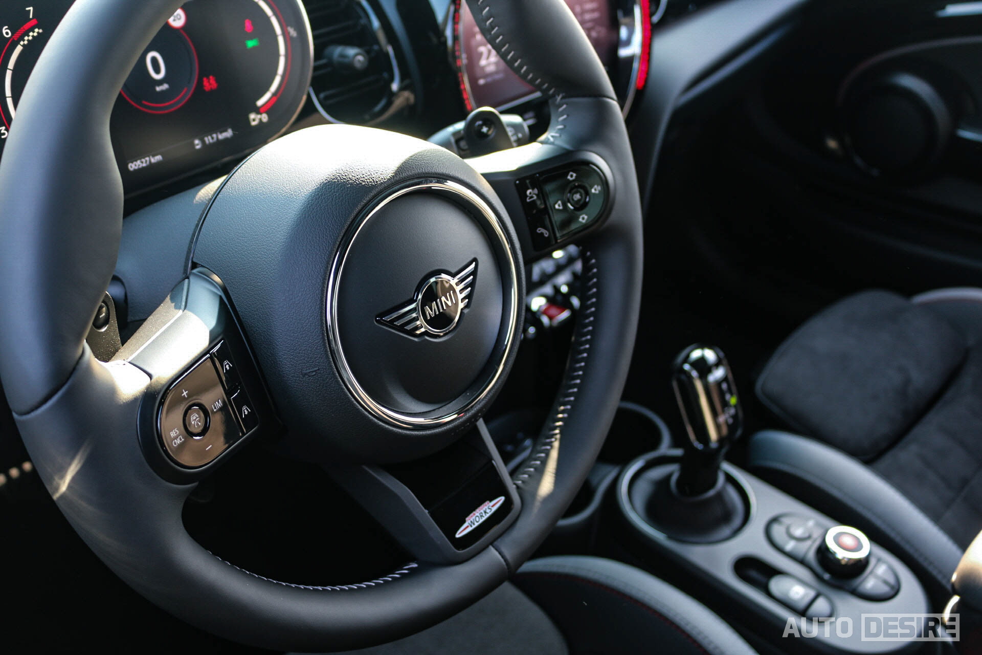 특히 스티어링 휠은 림을 나파가죽으로 마감해 기존보다 더 부드러운 질감과 쿠션감을 전하고, 좌우 스포크의 칼럼 버튼도 블랙 하이그로시로 변경해 시각적인 고급감은 물론, 버튼의 눌리는 질감도 투박함이 줄어들었다. 스티어링 휠 하단 스포크에 JCW 로고와 함께 뒤쪽으로 시프트 패들이 적용되고, 이제 스티어링 휠 열선도 장착된다.