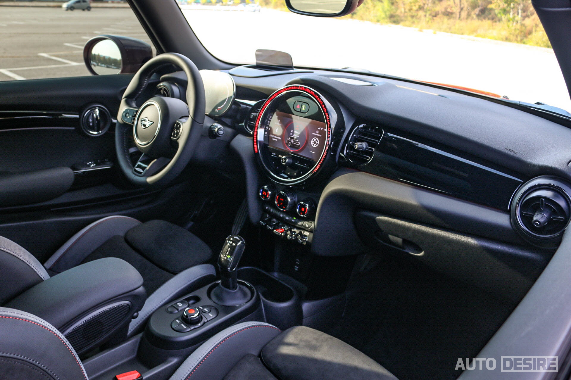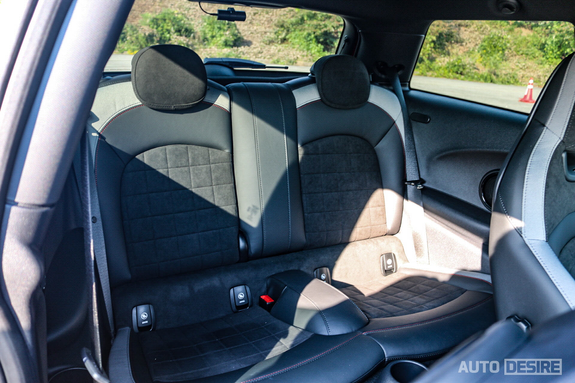 JCW 전용으로 들어가는 스포츠 버킷 시트는 이전 JCW 모델과 큰 차이는 없으나, 헤드레스트 일체형에 높에 솟아오른 사이드 볼스터, 스웨이드 마감과 탄탄한 착좌감으로 스포츠 주행에서도 운전자의 이리저리 쏠리는 것을 줄여주고, 제법 잘 잡아주는 편이다. 이전에 탔었던 19년형과 비교해 보면 시트의 포인트 컬러가 레드에서 밝은 그레이 컬러인 것이 다른 점.