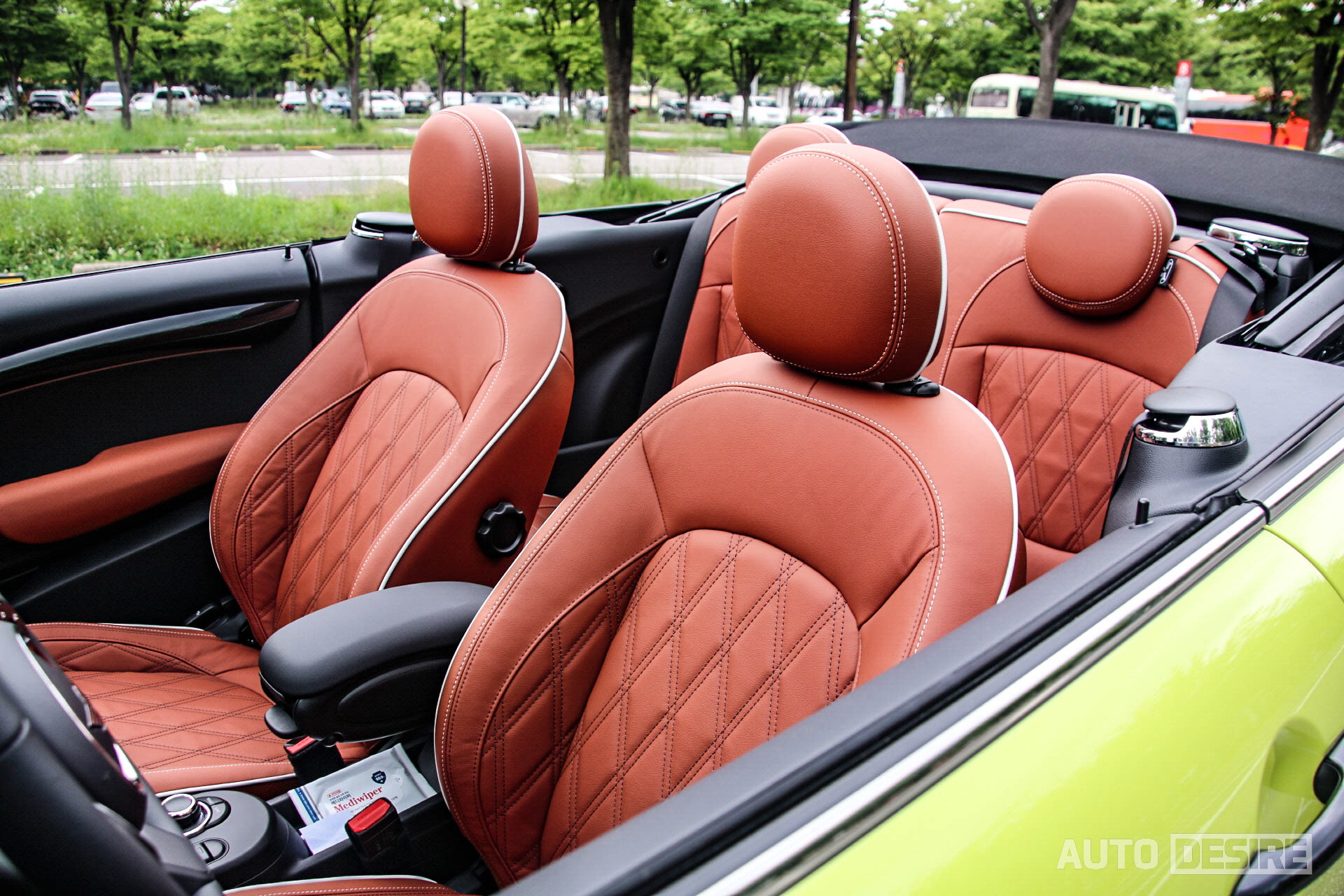 3세대 미니 컨버터블 쿠퍼 S 초기 모델부터 쭉 이어져 오던 몰트 브라운 가죽 체스터 시트(런치팩은 제외)는 이번 2022 미니 컨버터블 쿠퍼 S에서도 이어지며, 시각적으로는 클래식하면서도 여유 있고 고급스러운 분위기를, 착좌감에서는 다른 시트 대비 조금 더 푹신하고 편안한 느낌을 전한다.