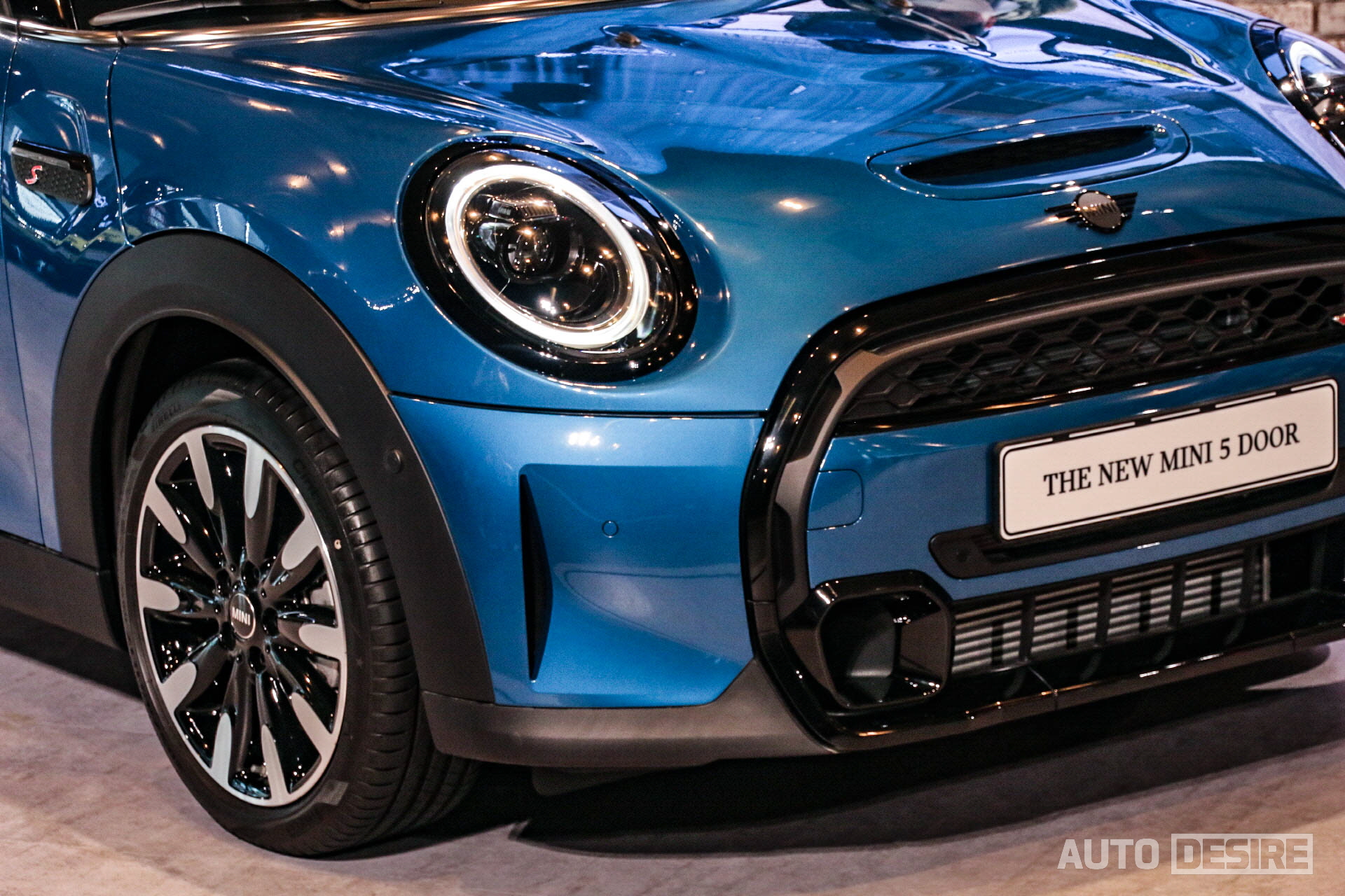 외관에서는 미니가 가진 고유의 원형 LED 헤드램프와 주간 주행등, 커다란 프런트 그릴 등 아이덴티티는 그대로 유지하되 2022 미니 해치백에서는 세부적인 디테일 변화를 통해 인상이 심플한 듯 더 또렷하고 스포티한 느낌으로 달라진 것이 특징이다. 상단 프런트 그릴과 범퍼 하단 공기흡입구는 그릴 테두리를 통해 하나로 이어진 형태로 변경되었고, 범퍼는 안개등이 삭제되고 수직형의 에어커튼을 더해 한층 간결하면서도 미니가 가진 인상 자체는 또렷하게 잘 살려주는 모습으로 달라졌다.