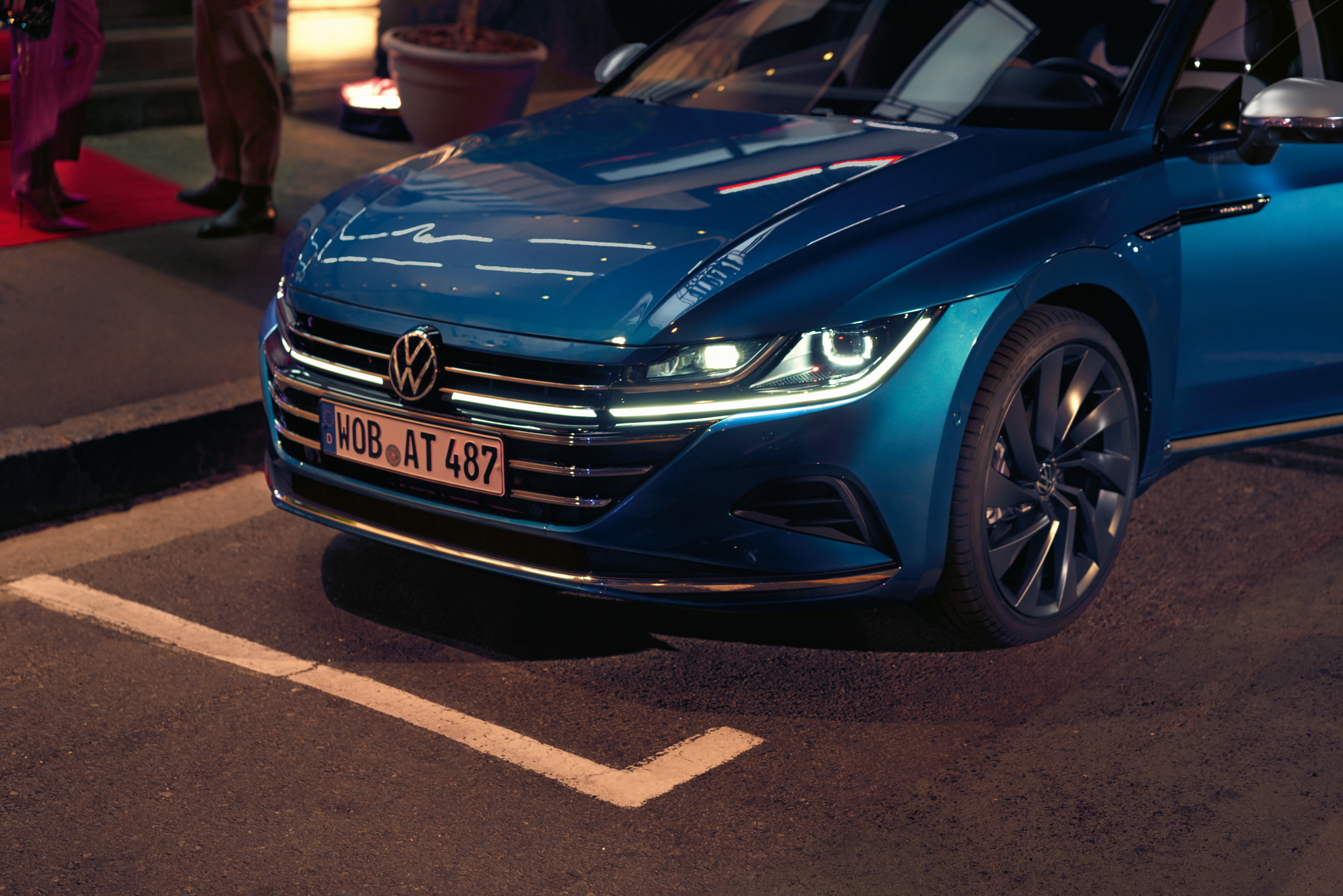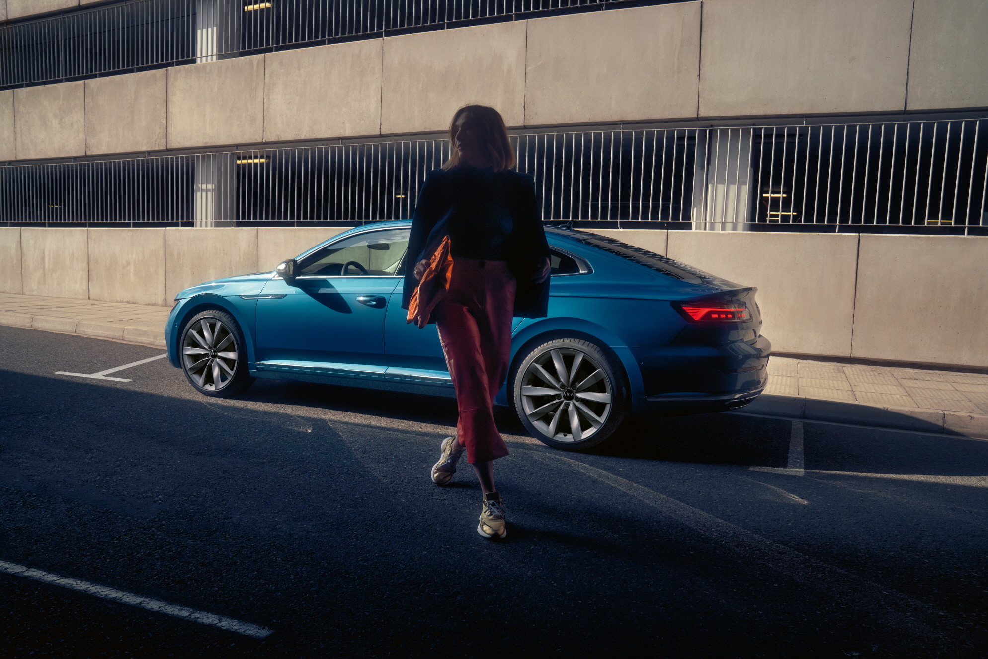 날렵한 패스트백 라인과 함께 측면의 강렬한 캐릭터 라인은 후면 LED 리어 램프까지 이어지며 아테온을 더 낮고 역동적으로 보이도록 만들어준다. 여기에 테일게이트의 폭스바겐 로고와 아테온 레터링, LED 리어 램프가 볼륨감 있게 후면부를 완성한다. LED 리어 콤비네이션 램프 역시 전 트림에 기본으로 적용되며, 다이내믹 턴 시그널이 탑재된다.
