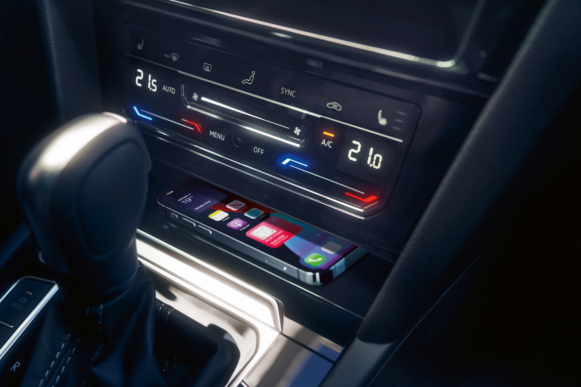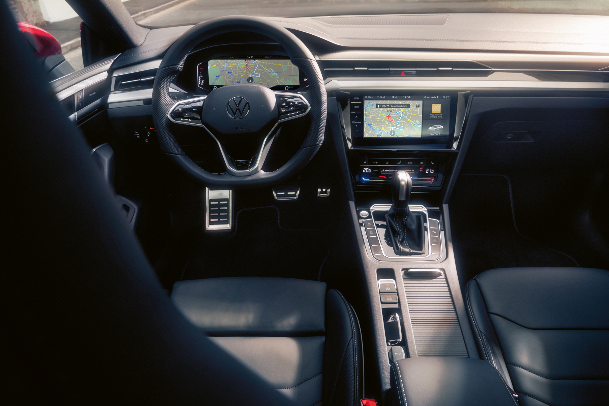 실내에서는 간결하고 모던한 인상을 유지하면서 최신 기술 편의 사양을 적용해, 운전자에게 디지털 된 사용자 경험, 편의성을 제공한다. 신형 아테온에는 터치 인터페이스 멀티 펑션 스티어링 휠이 적용되어 스티어링 휠에서 터치와 햅틱 반응으로 인포테인먼트와 운전자 보조 시스템, 내비게이션 조작이 가능하고, 센터 콘솔에 슬라이드식 공조 시스템을 탑재해 정돈된 인상과 함께 탭핑, 홀딩, 슬라이딩 조작으로 실내 온도와 바람 세기, 열선 및 통풍 시트, 공조 유형 조절을 편리하게 조작할 수 있다. 3존 클리마트로닉 자동 에어컨도 전 트림에 기본 적용된다.