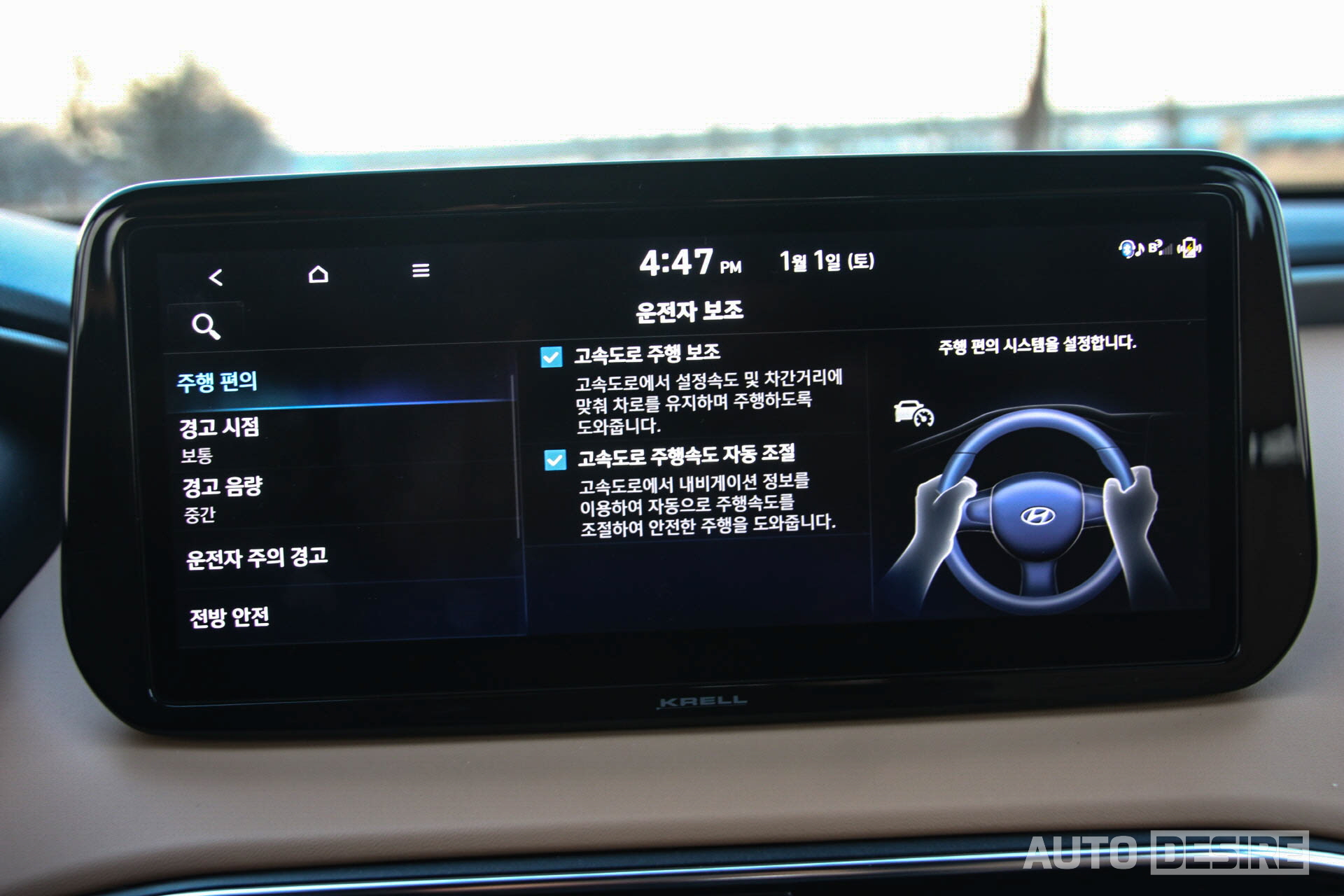 주행 보조 및 안전 사양에 있어서 원격 스마트 주차 보조와 서라운드 뷰 모니터, 전방 충돌방지 보조, 차로 이탈방지 보조, 차로 유지 보조, 운전자 주의 경고, 하이빔 보조, 전방 차량 출발 알림, 스마트 크루즈 컨트롤, 고속도로 주행 보조, 운전자 인식형 스마트 주행 모드, 후측방 충돌 방지 보조, 후방 교차 충돌방지 보조, 안전 하차 보조, 후석 승객 알림이 적용되어서 장거리 주행 편의와 안전 사양에 있어서도 모자람 없는 구성을 갖추고 있다.