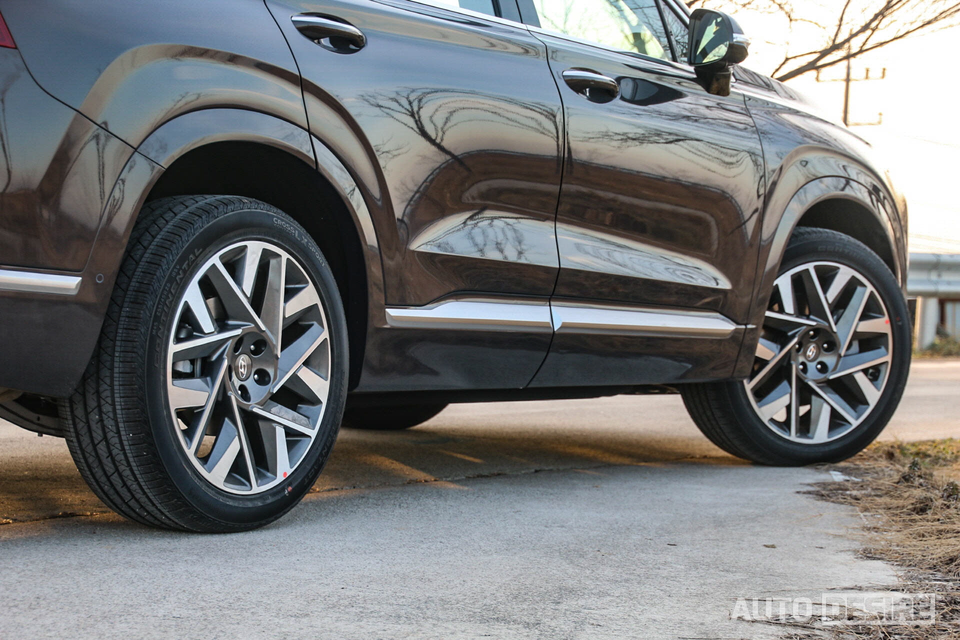 타이어 역시 기존 더 뉴 싼타페 가솔린 캘리그래피와 동일하게 255/45 R20 사이즈, 콘티넨탈 크로스콘택트 LX가 장착되어 있다.