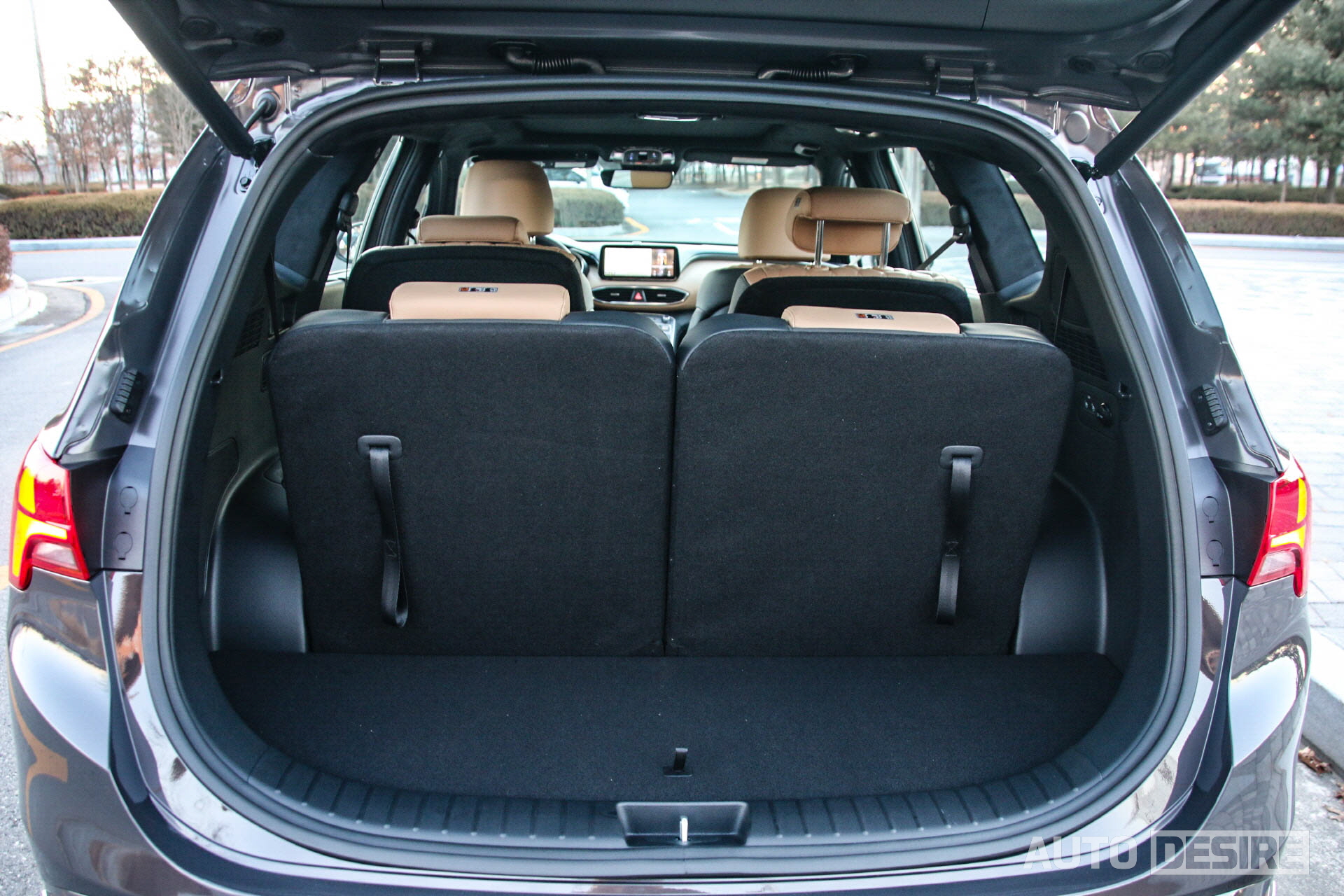 적재 공간은 시트를 모두 펼친 상태에서도 넓진 않지만 적당한 여행용 가방, 캐리어 정도를 올릴 공간은 확보되며 3열만 접어줘도 상당하게 공간 확보가 되며, 2열까지 전부 폴딩하면 성인 2인이 여유를 가지고 누울 정도의 공간까지 확보가 된다. 다만 보이듯이 2열 독립 시트 중앙 부분이 비기 때문에 차박용으로 활용하려면 별도로 매트를 같이 까는 것을 추천한다.