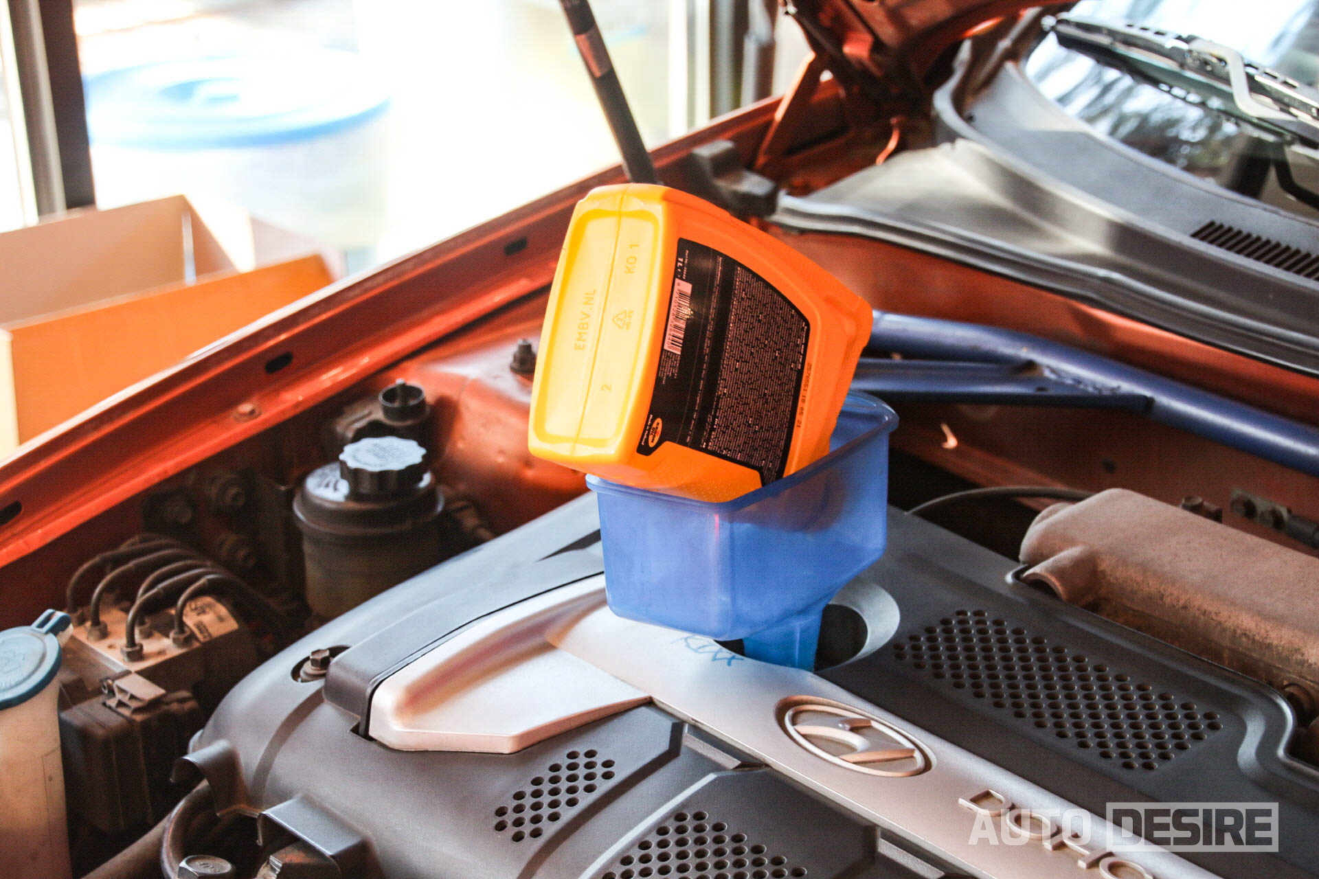 깔때기 꽂아서 새지 않게 조심조심. 황금빛 새 오일 입장~